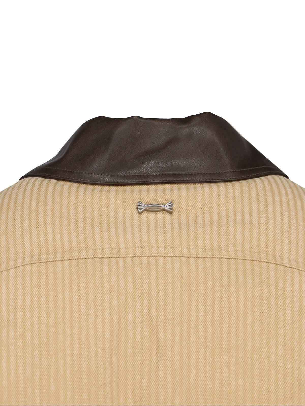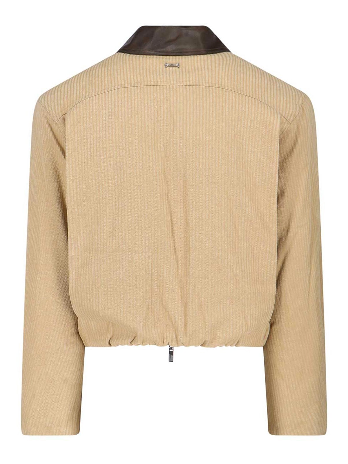Jacke Ader Error mit Reißverschluss, aus beiger Baumwolle, gerippter, kontrastfarbener Kragen aus braunem Kunstleder, doppelter Reißverschluss, zwei Seitentaschen, langzeitiges Logo-Detail aus silberfarbenem Metall auf der Rückseite, gerader, elastischer Saum.