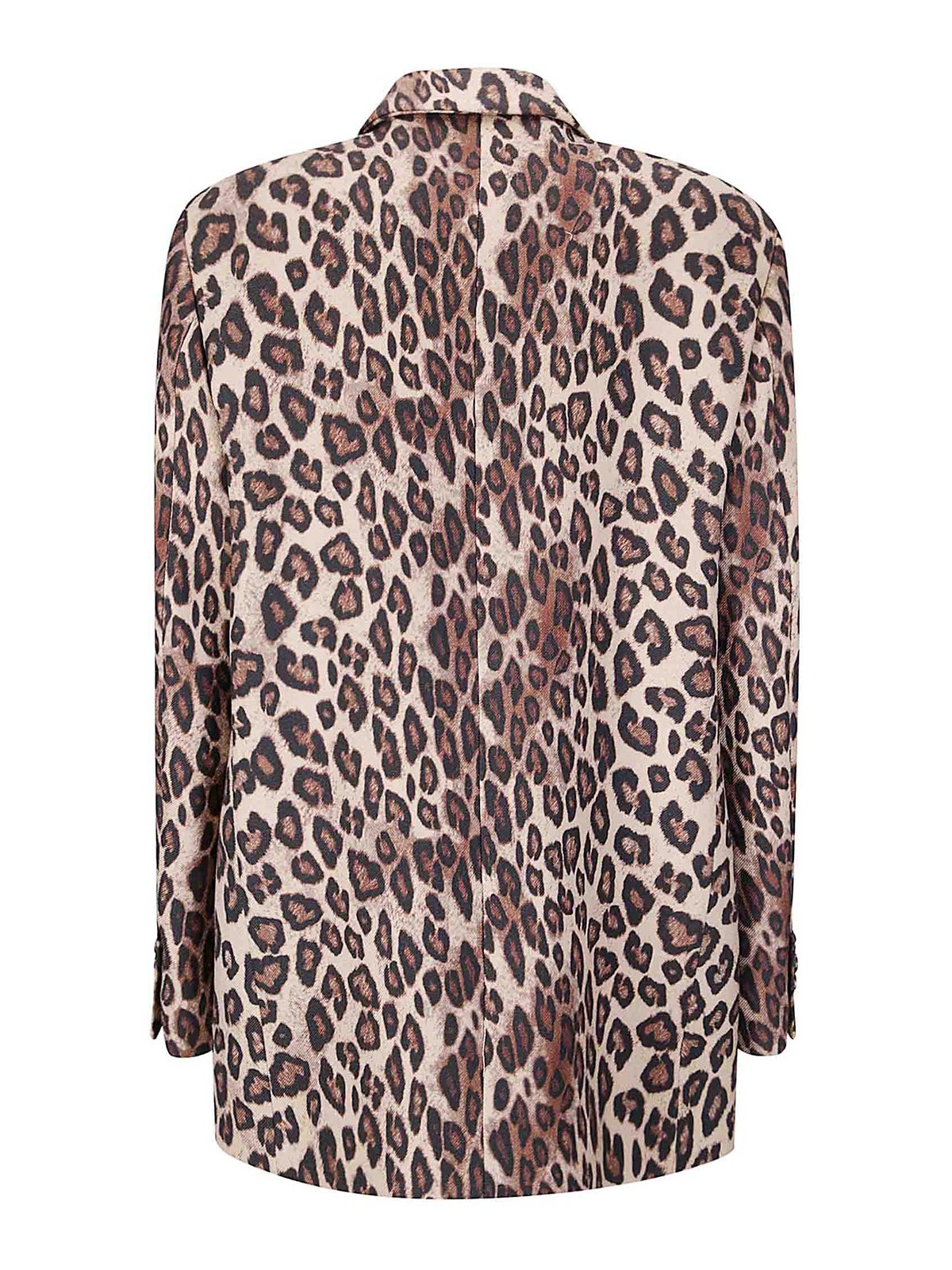 Einreihige Jacke mit Animal-Print, klassischer Kragen, Knopfverschluss, zwei Pattentaschen, gerader Schnitt.