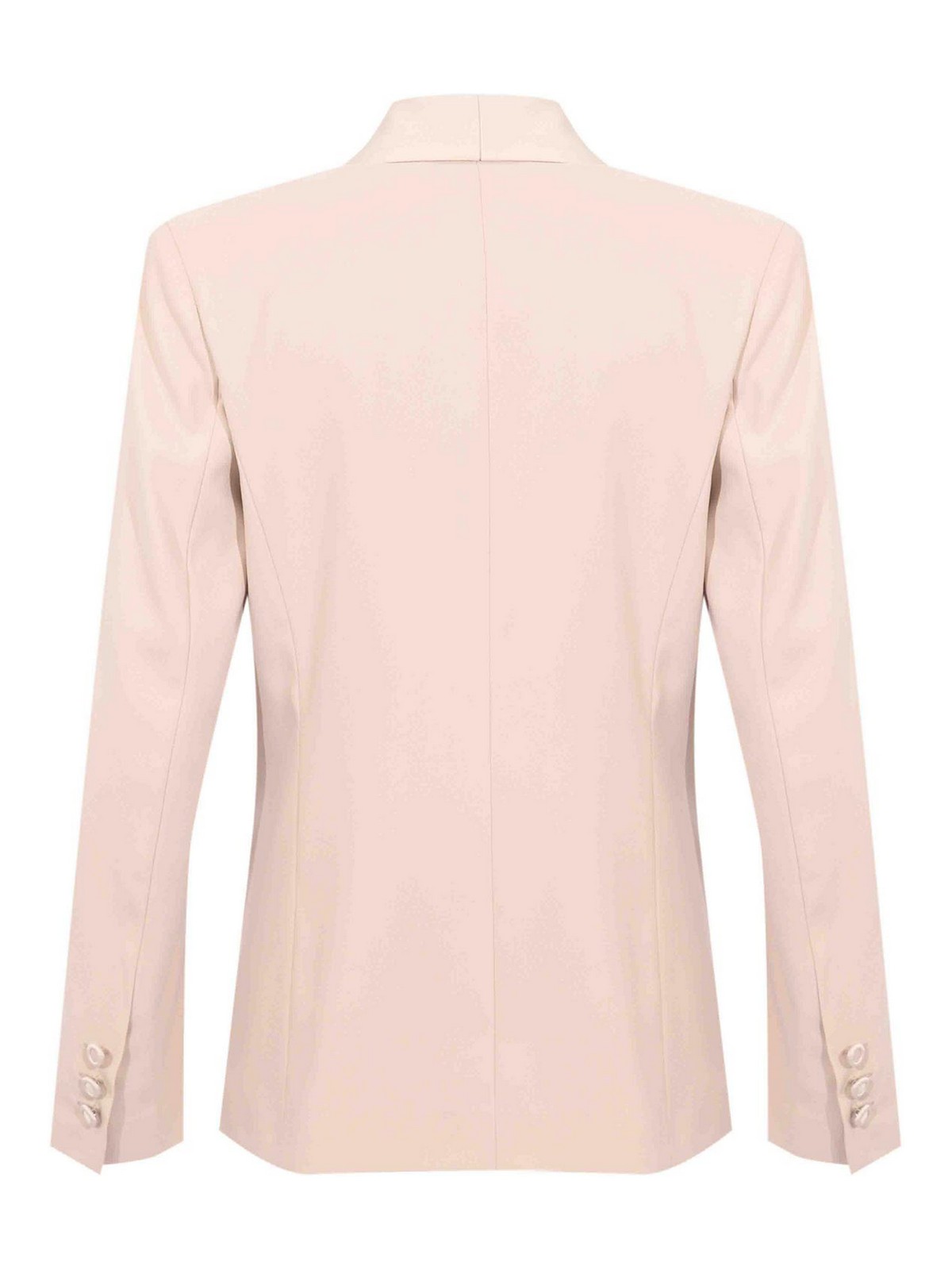 Damenjacke aus Crêpe und Satin, Außenseite, einreihiges Modell, Stoff: Krepp mit Satindetails, Muster: einfarbig, Ärmel: lang, Kragen: Satin-Schalrevers, Verschluss: einreihig mit einem Knopf, Taschen: Leistentaschen vorne und Brusttasche, Details: Satineinsätze am Revers und an den Taschenprofilen, taillierte Linie, Futter: S, Passform: normal