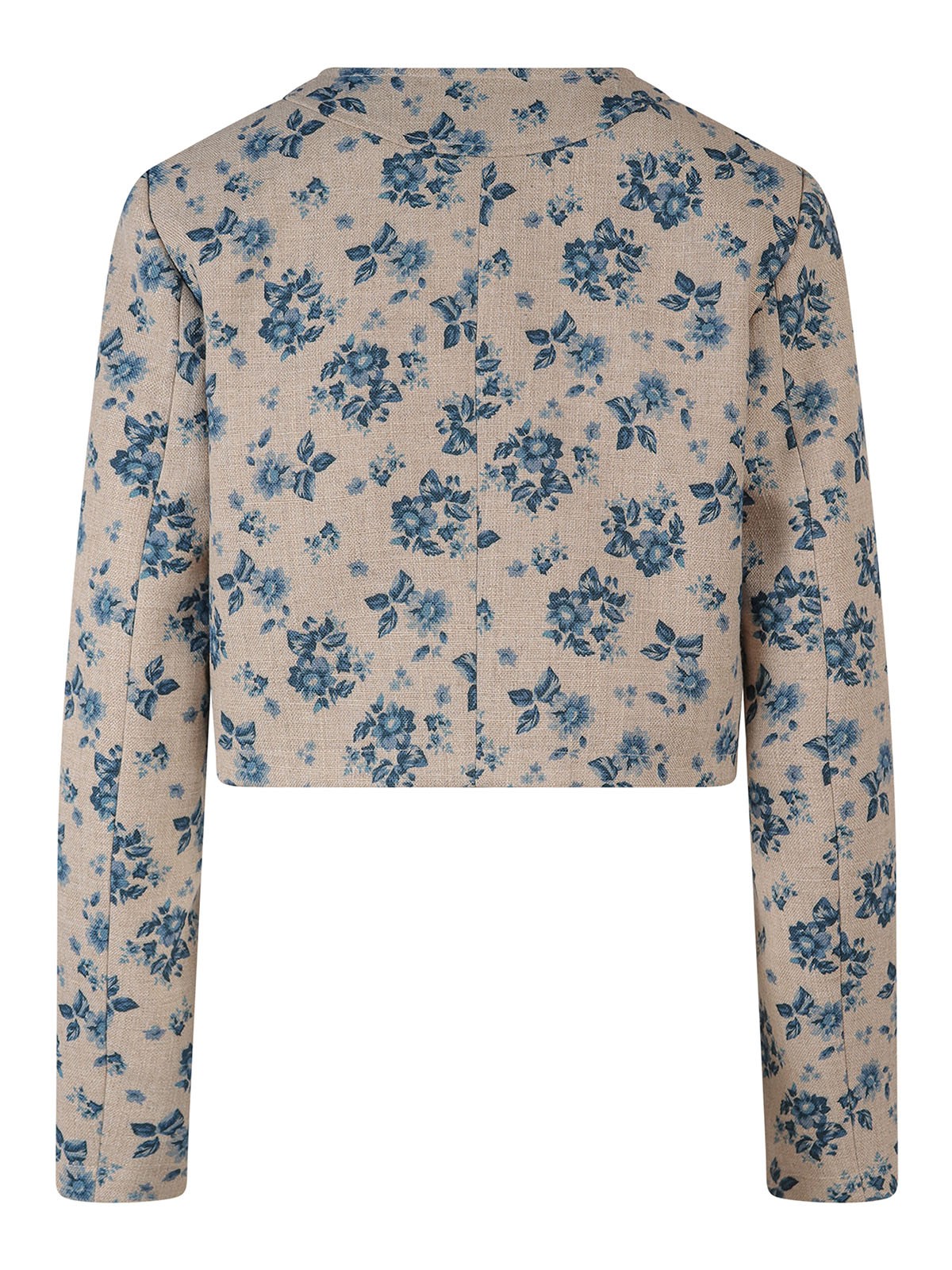 Crop-Blazer mit Blumendruck und Rundhalsausschnitt, Verschluss mit Reißverschluss, zwei Fronttaschen mit Klappe,