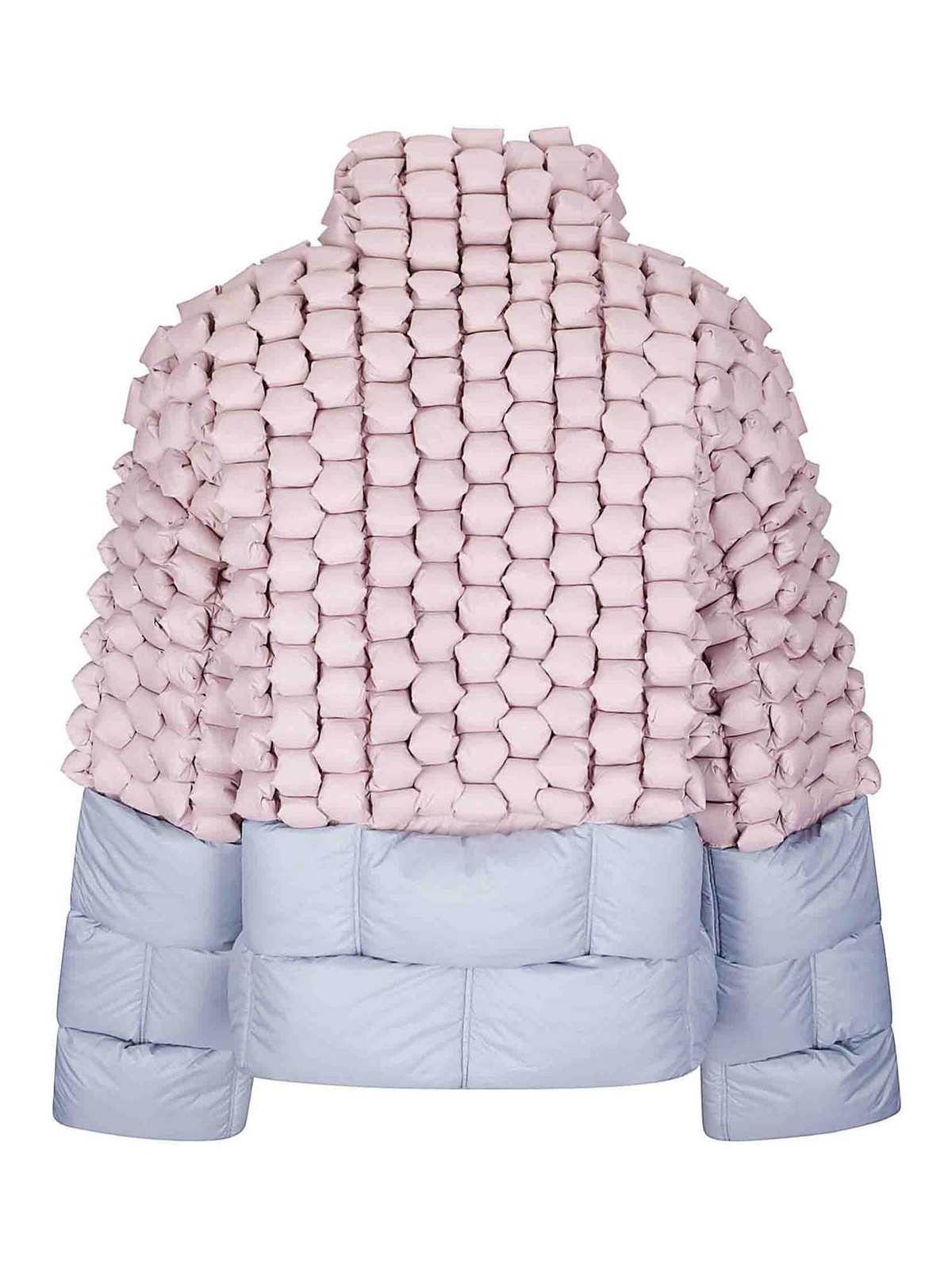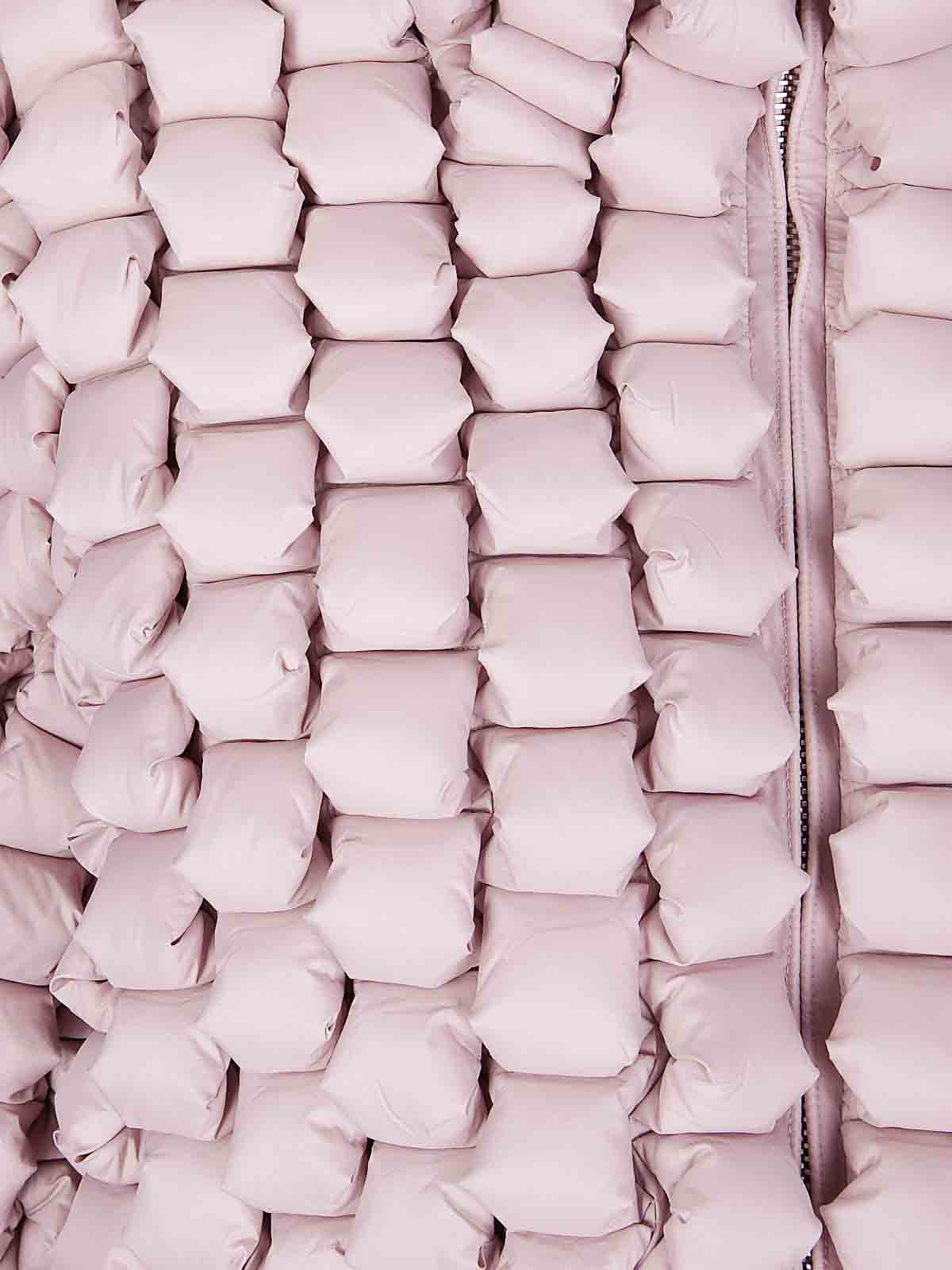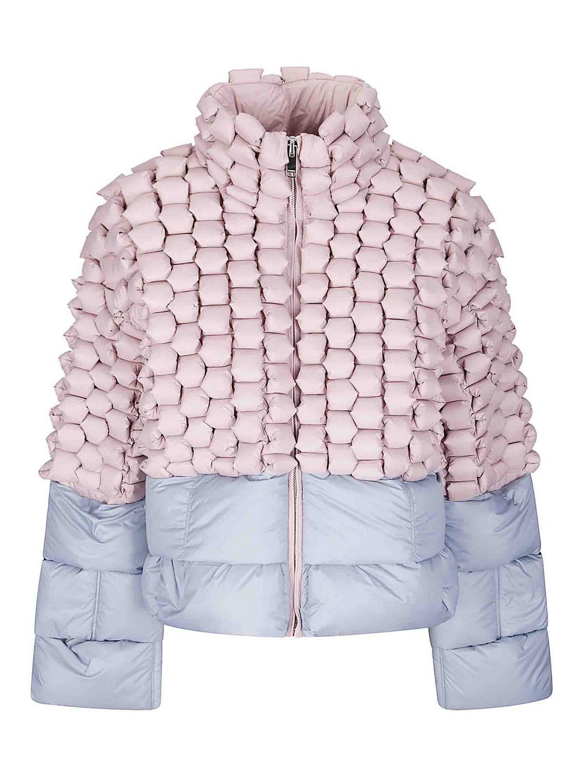 Voluminöse Daunenjacke, Reißverschluss, Stoff mit dreidimensionalen Effektnähten, kurz geschnittene Passform.