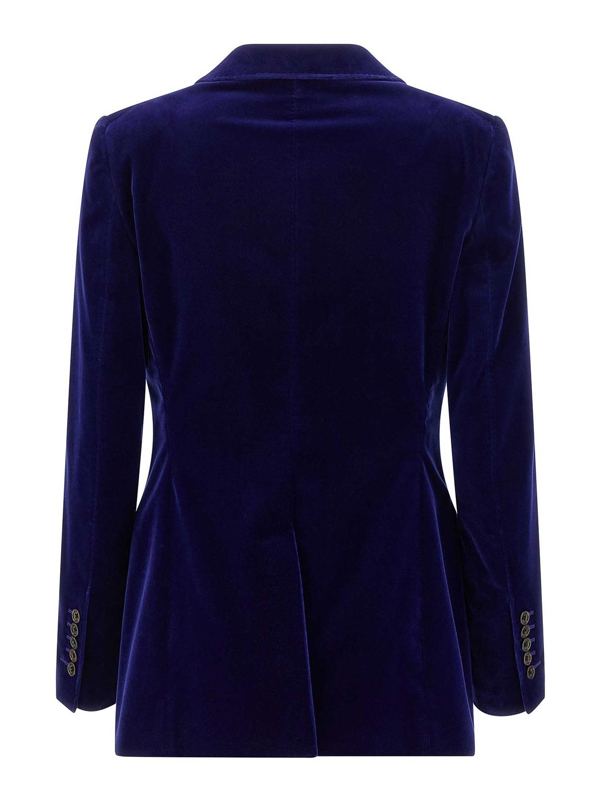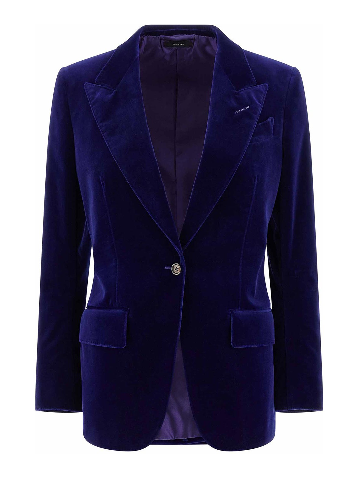Einreihiger 'Wallis' Blazer aus Samt mit Knopfverschluss auf der Vorderseite, spitzem Revers, Brusttasche, Pattentaschen, langen Ärmeln, strukturiertem Schultergurt, Rückenschlitz, Futter.