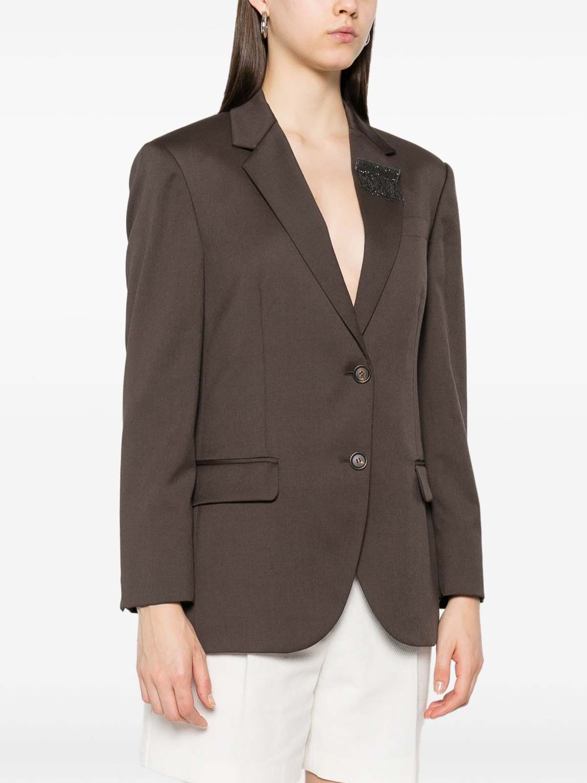 Einreihiger brauner Blazer von Brunello Cucinelli mit Seitentaschen mit Knopf und Klappe, Einreihiger Blazer, Braun, Brunello Cucinelli, Knopf- und Pattentaschen
