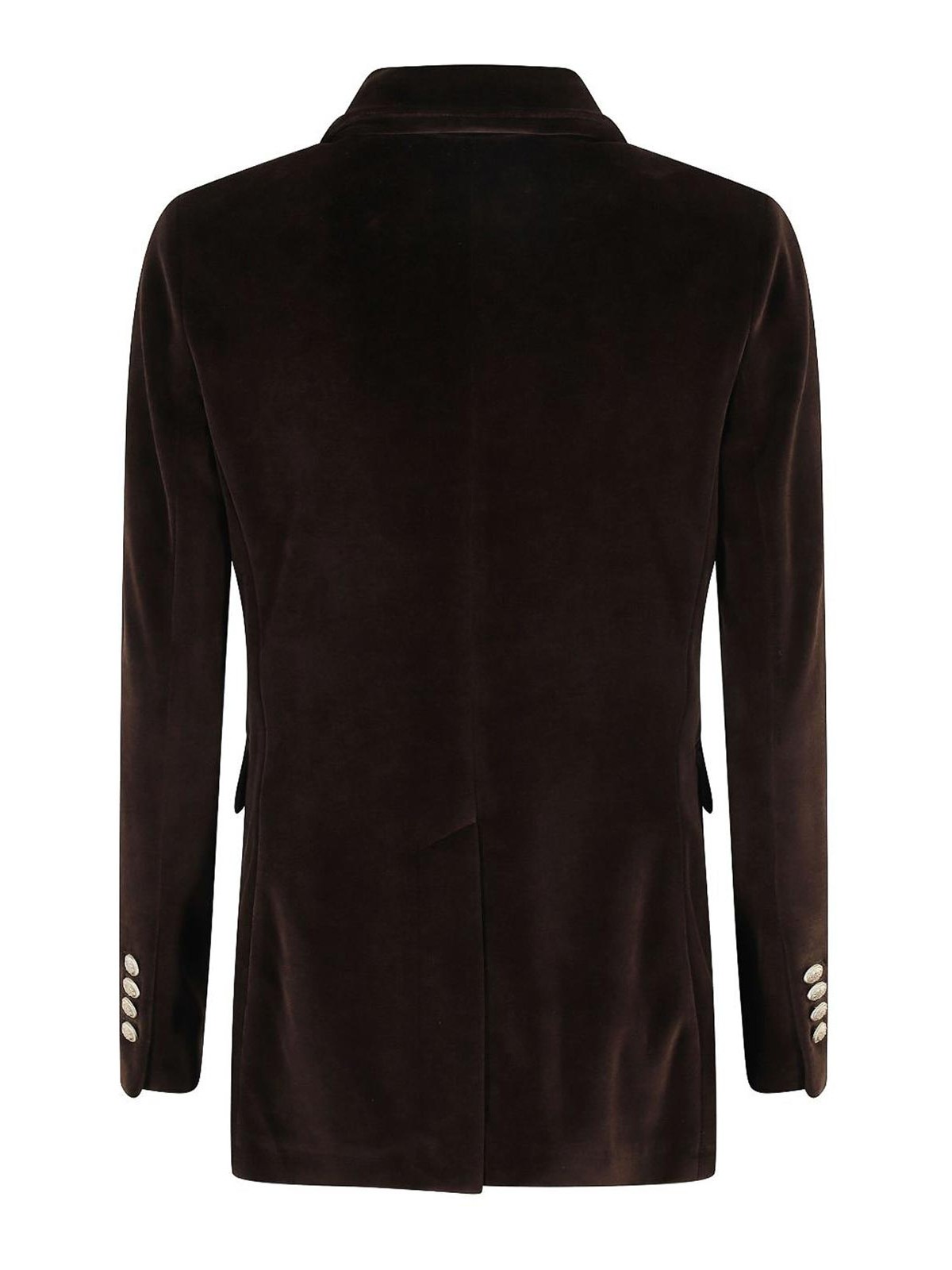Brauner Samt mit doppelreihigem Knopfverschluss und langen Ärmeln am Revers