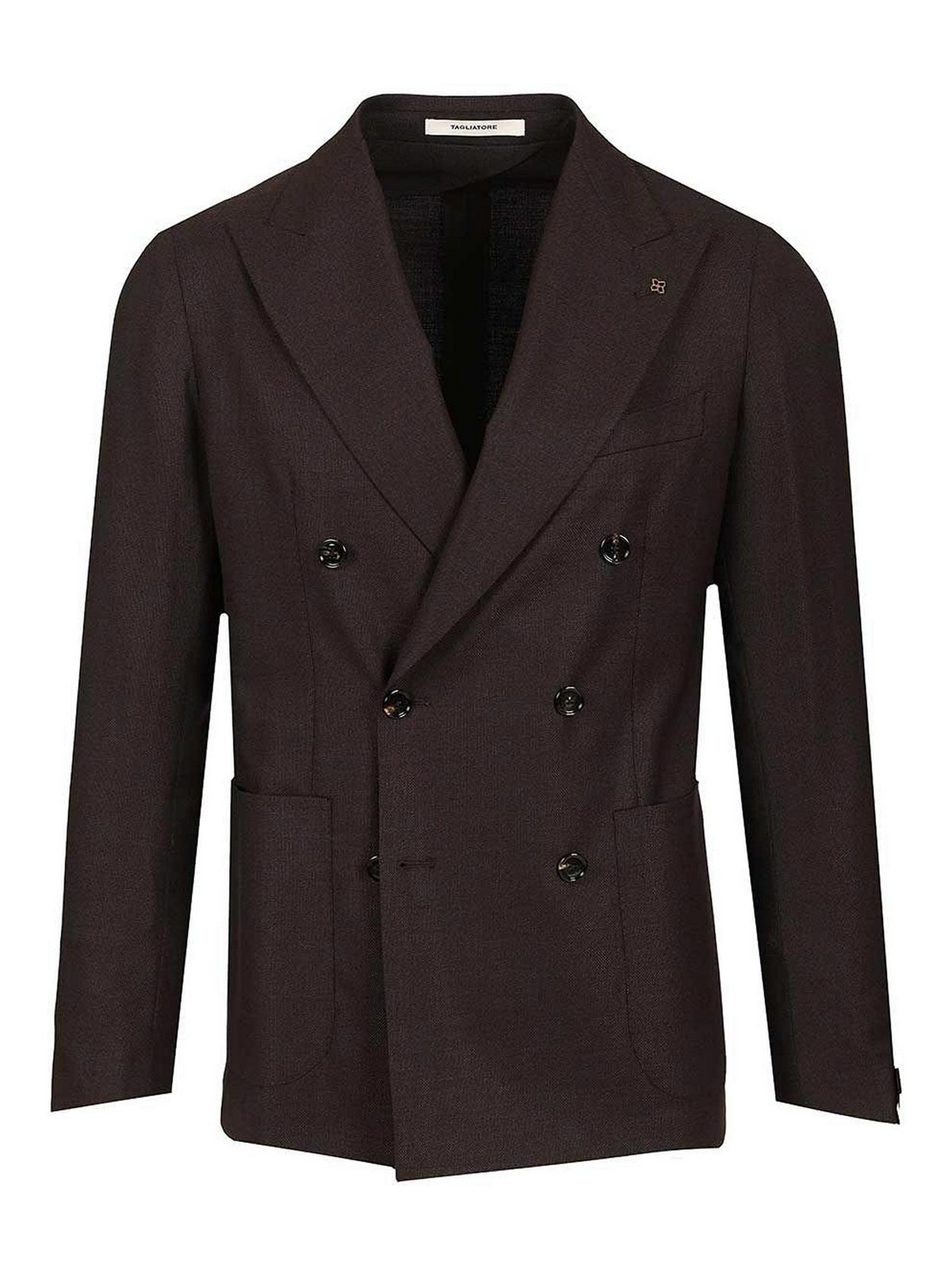 Doppelreihiger Blazer mit spitzem Revers, vollständig gefütterte Knöpfe, aufgesetzte Taschen, doppelter Rückenschlitz