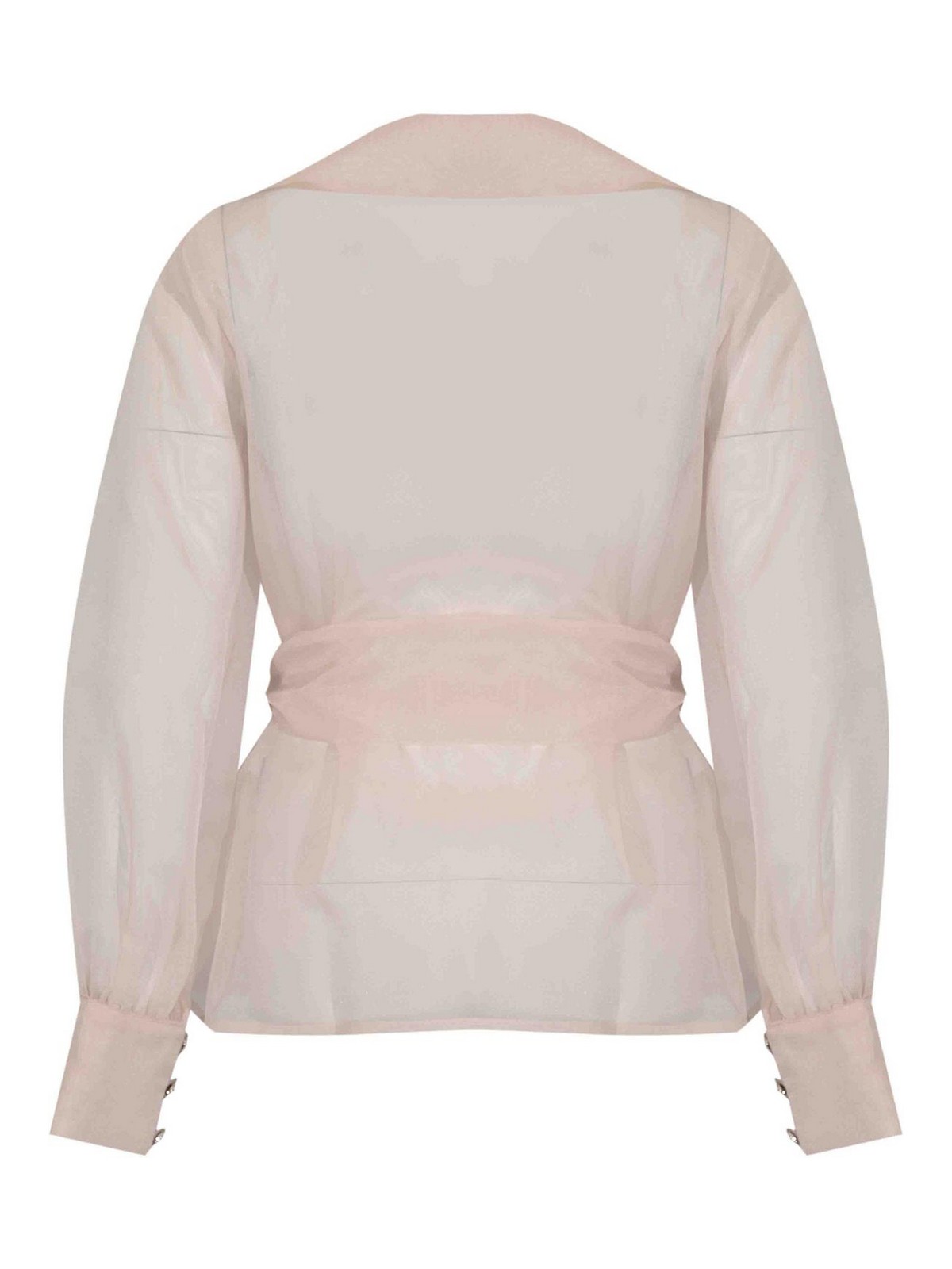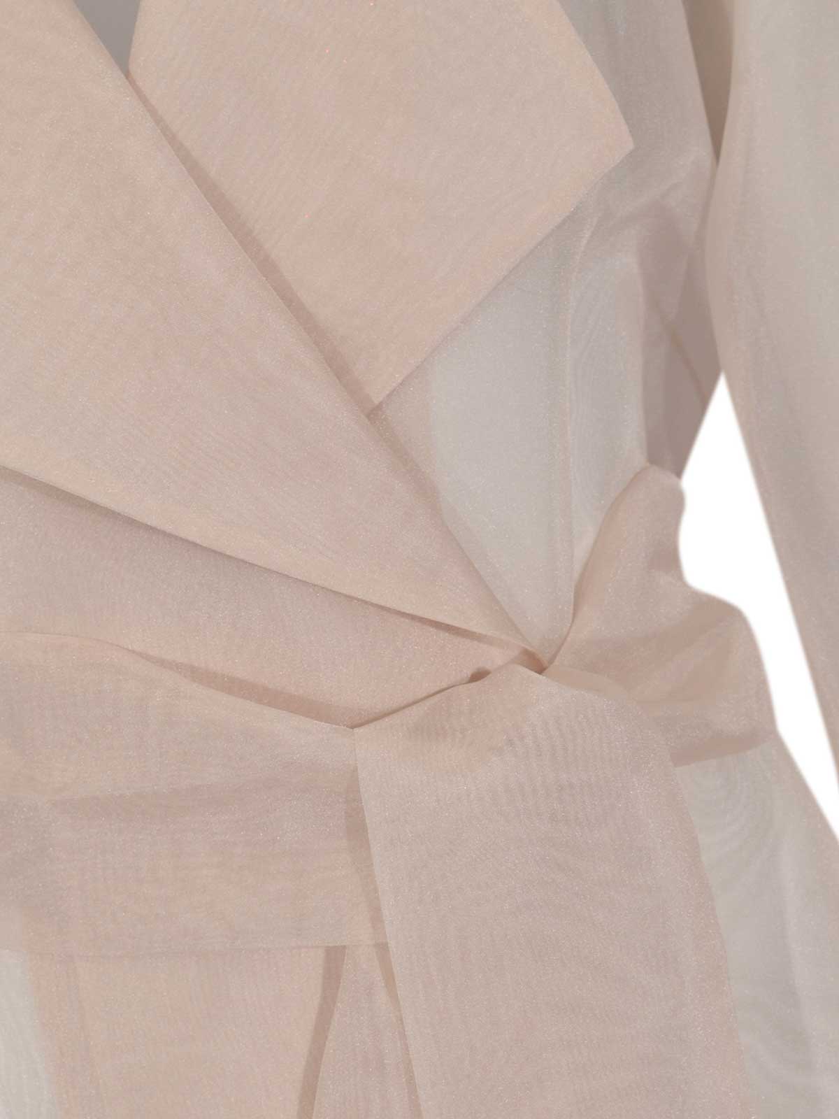 Organza-Jacke für Damen, Tarik Ediz, Modell leda 66423, Stoff: Organza, Muster: einfarbig, Ärmel: lang mit hohen Manschetten und Schmuckknöpfen, Kragen: breites Schalrevers, Verschluss: mit Gürtel in der Taille, Taschen: fehlen, Details: halbtransparente Jacke mit elegantem und leichtem Design, farblich abgestimmter Gürtel mit vorderem Knoten, der die Silhouette betont, leicht geraffte Ärmel mit strukturierten Manschetten und Zierknöpfen, flüssig und raffinierte Linie, ideal für formelle oder feierliche Looks, gefüttert: nein, Passform: normal