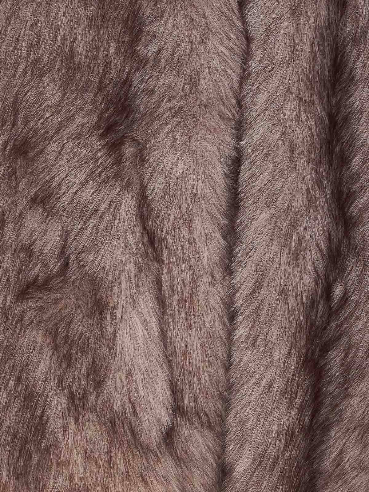 Lou Andrea, graues Kunstfell mit Reißverschluss, langen Ärmeln, Kapuzendetail, Taschen, elastischer Bund und Ärmelabschlüssen