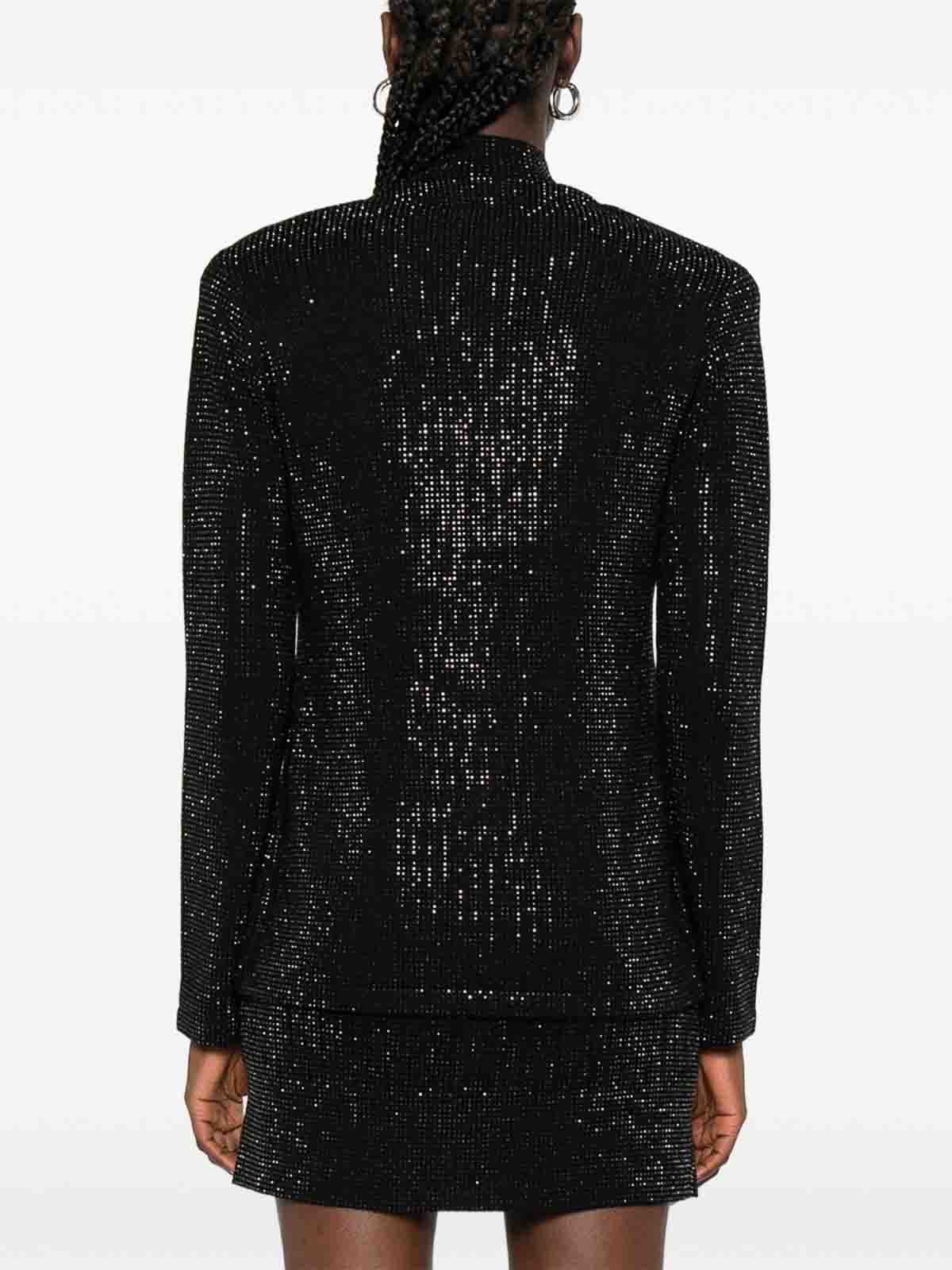 Schwarze Paillettenverzierung, V-Ausschnitt, lange Ärmel, Knopfverschluss, gerader Saum