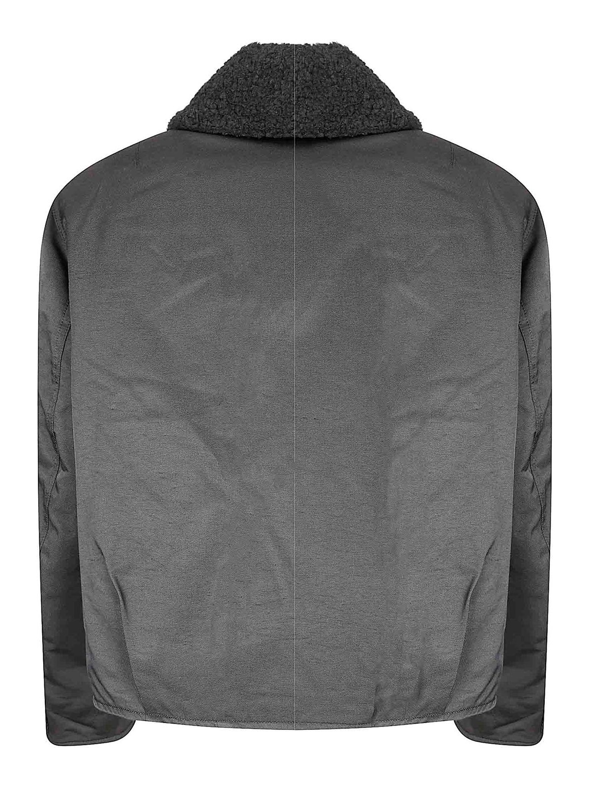 Jacke mit kontrastfarbenem Kragen, Frontreißverschluss und Druckknopfverschluss, zwei Fronttaschen, regulärer und kastenförmiger Schnitt.