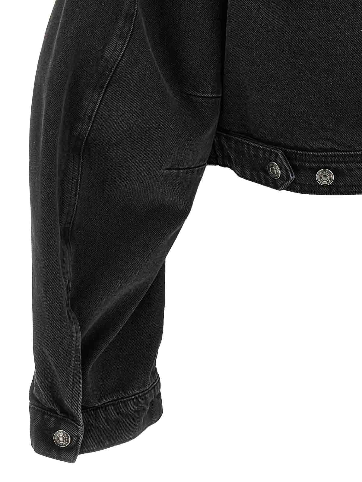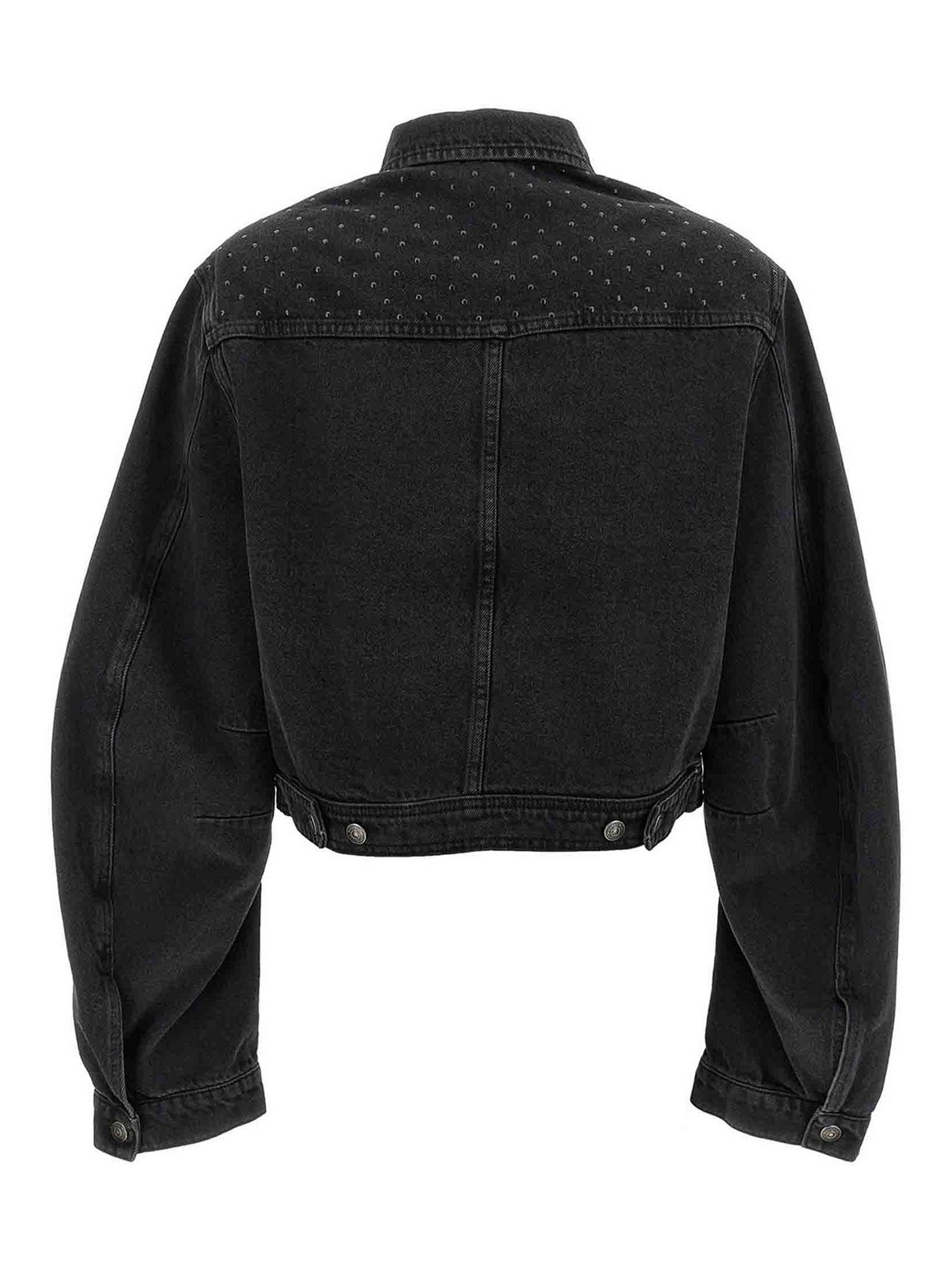 Jeansjacke aus Denim in Übergröße mit farblich abgestimmten Nieten im Crop-Stil, Knopftaschen, langen Manschettenärmeln und abgesenkten Schultern
