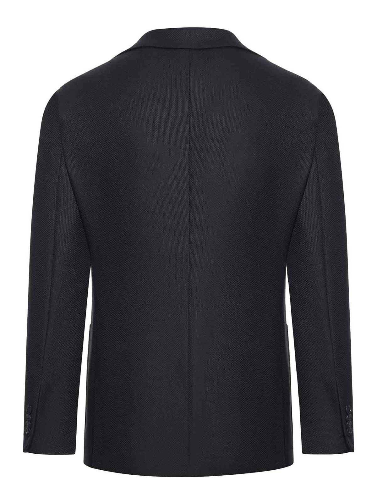 Piquetwebung, klassisches Revers mit Logo-Pin, lange Ärmel, geknöpfte Manschetten, Einstecktuch, zwei seitliche aufgesetzte Taschen, gerader Saum, einreihiger, Brustknopf, Farbe schwarz