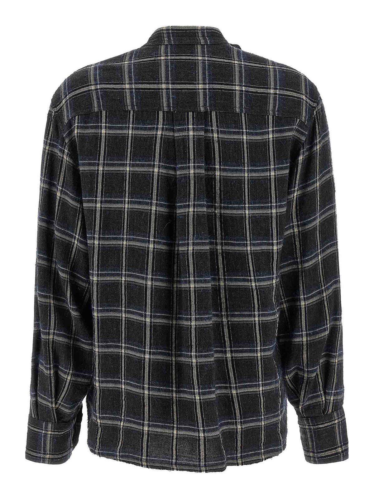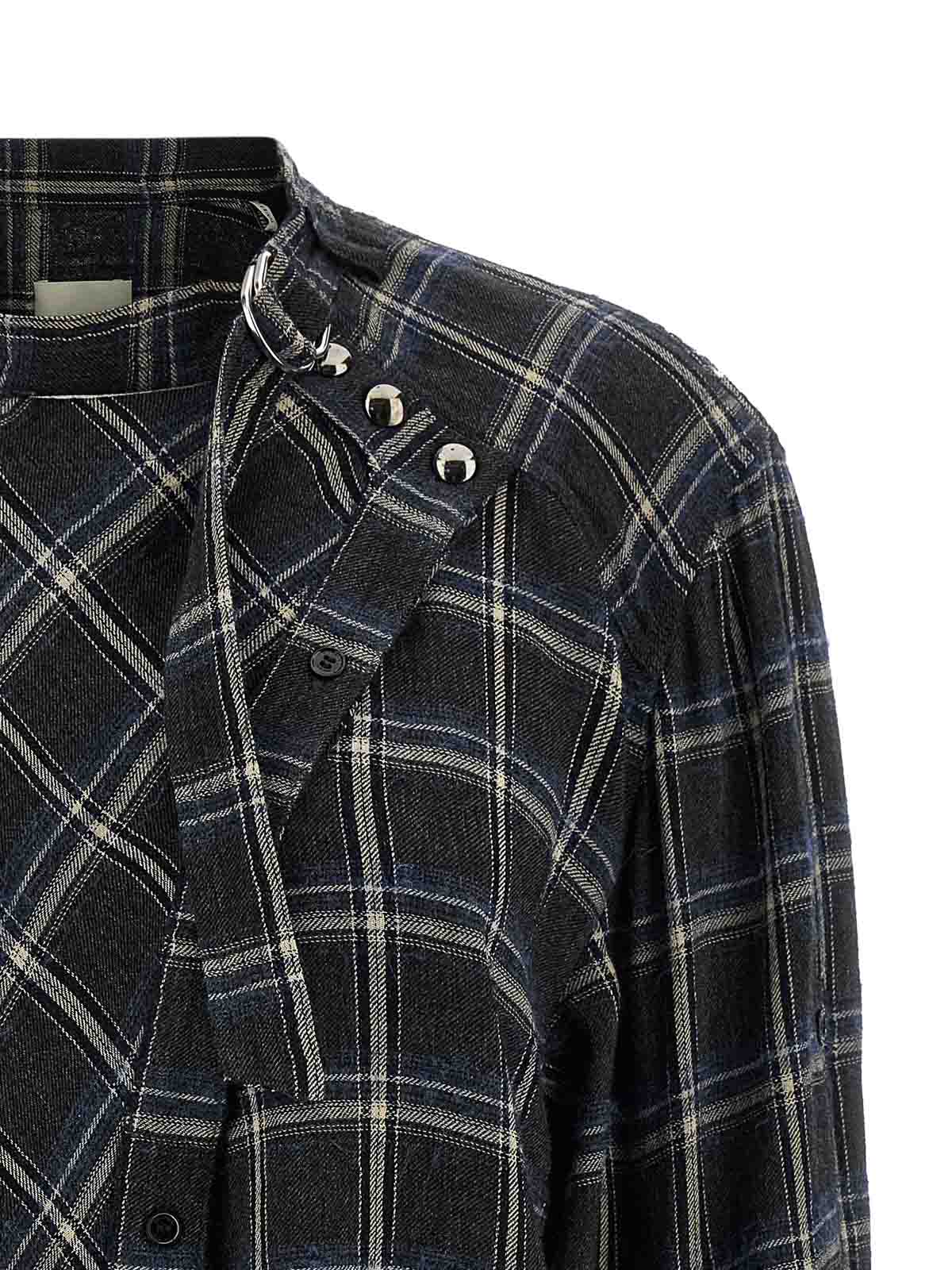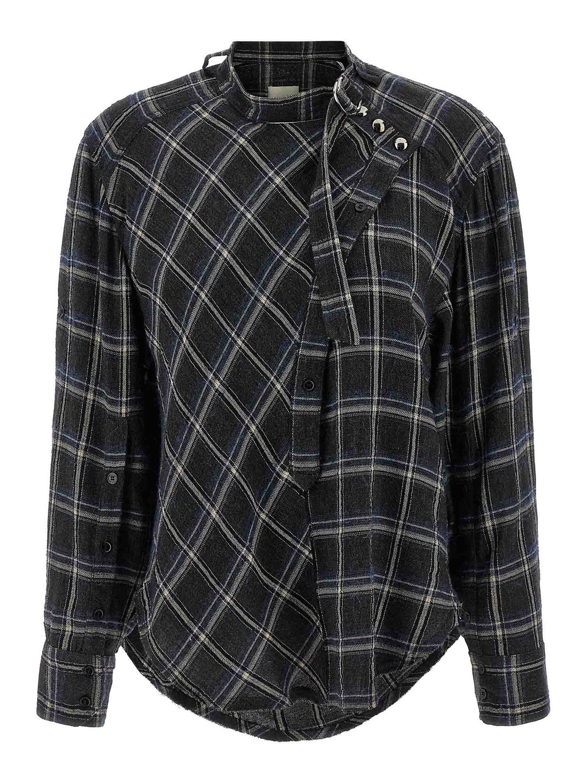 Gerla' Bluse aus Wollmischgewebe mit Schottenmuster, mandarinfarbener Kragen mit asymmetrischer Frontöffnung mit Knöpfen und verstellbarem Riemen am Hals mit Metallschnalle, lange Ärmel mit Manschetten und Umschlagärmeln mit Riemen und Knopf.