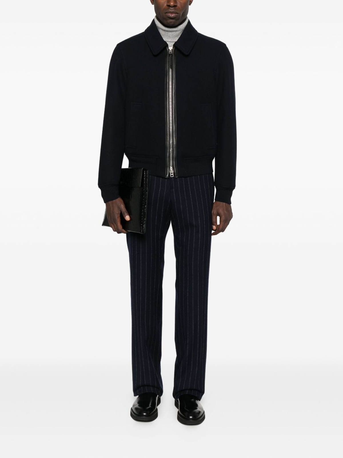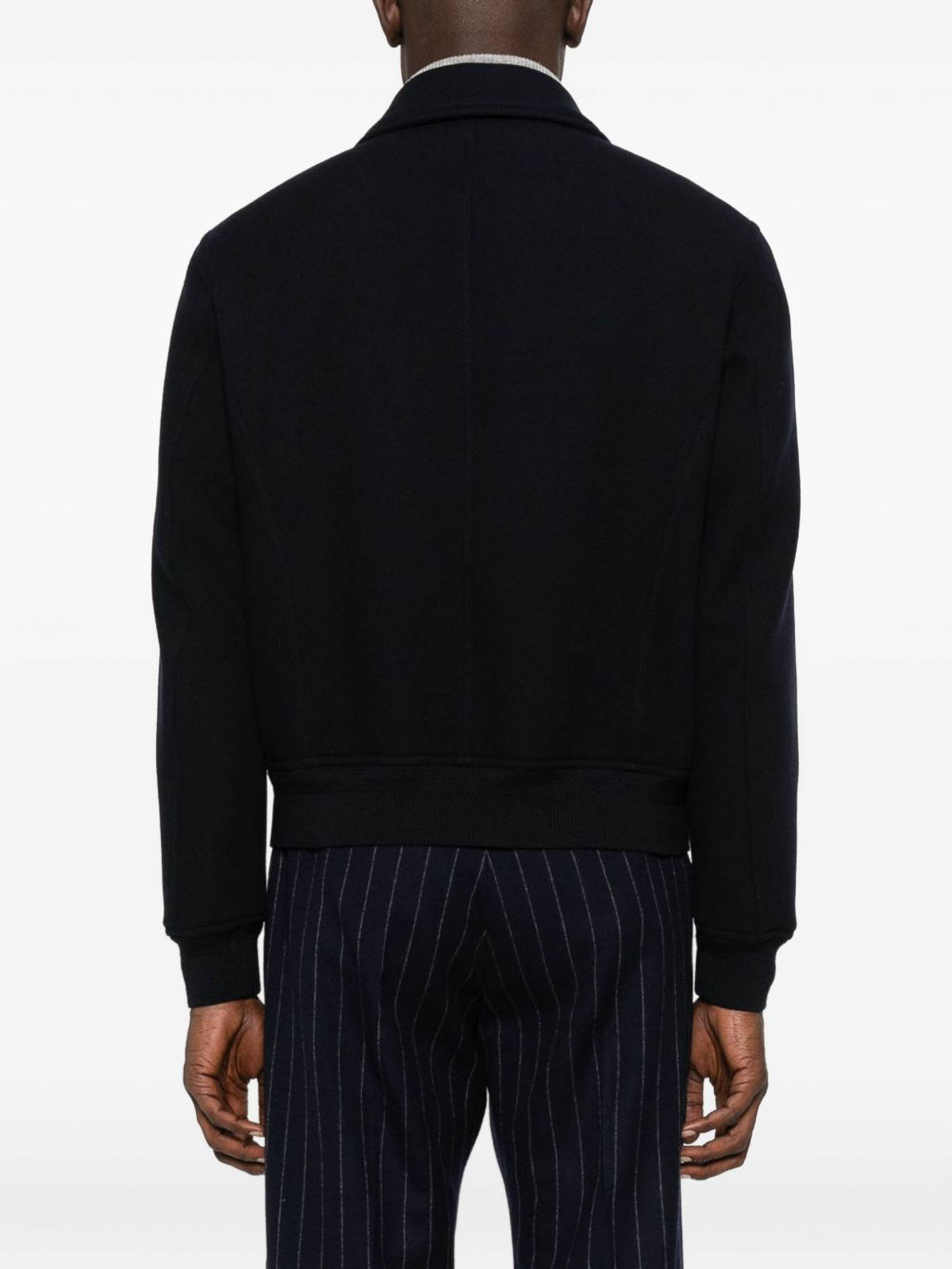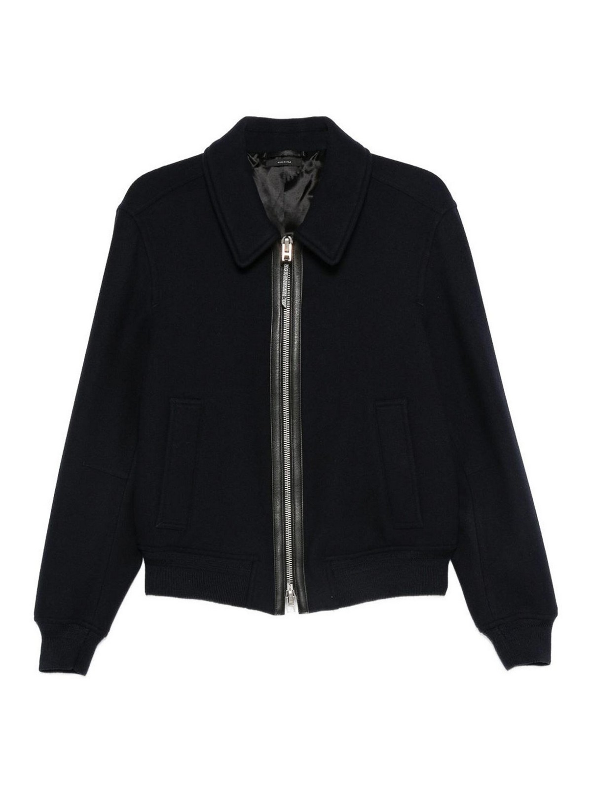 Origin Italy mit marineblauem Reißverschluss, klassischem Kragen, Seitentaschen und geripptem Saum