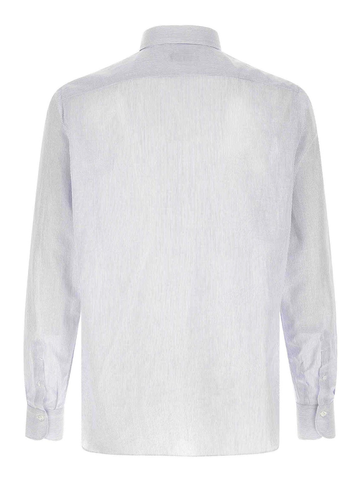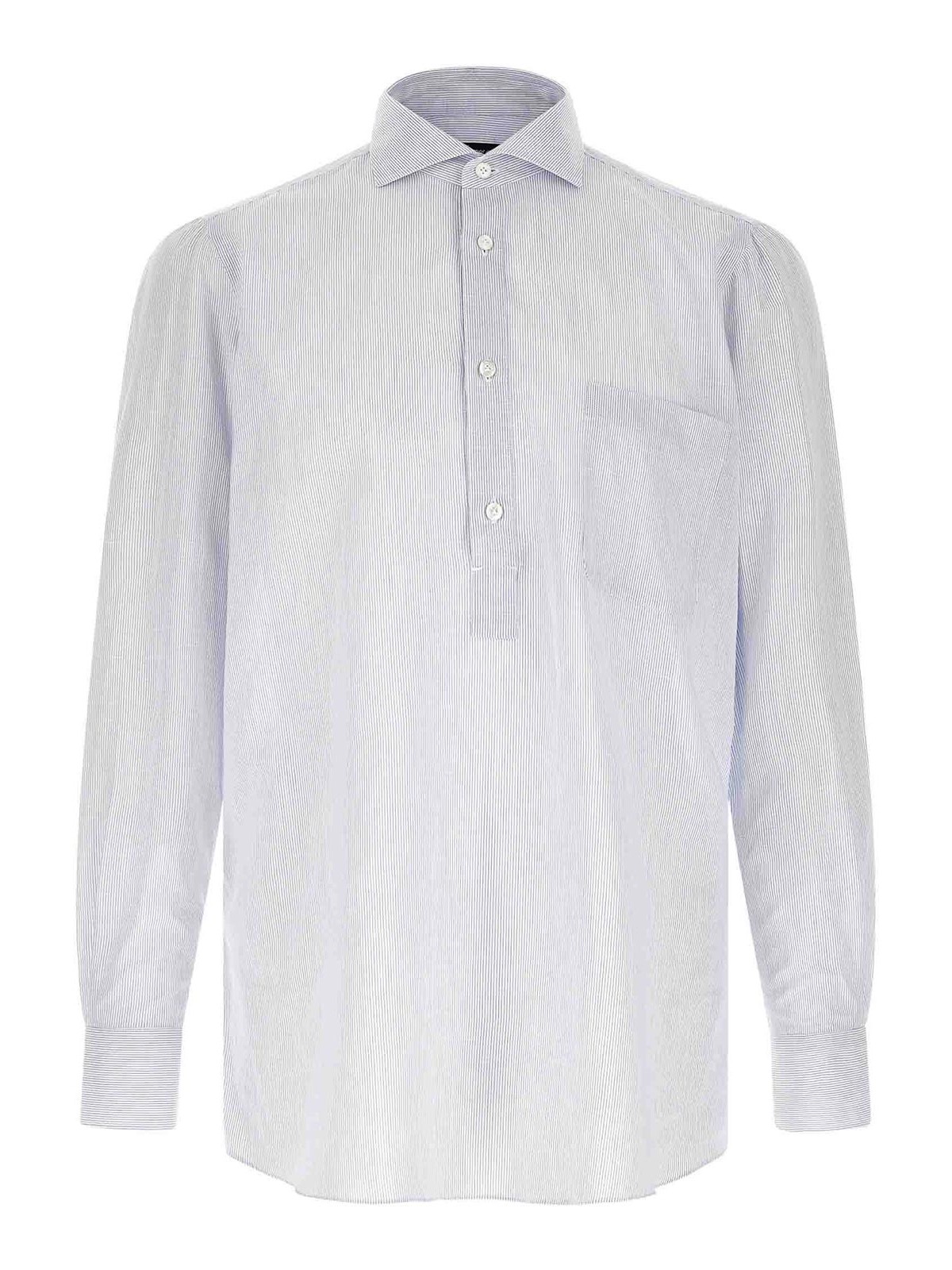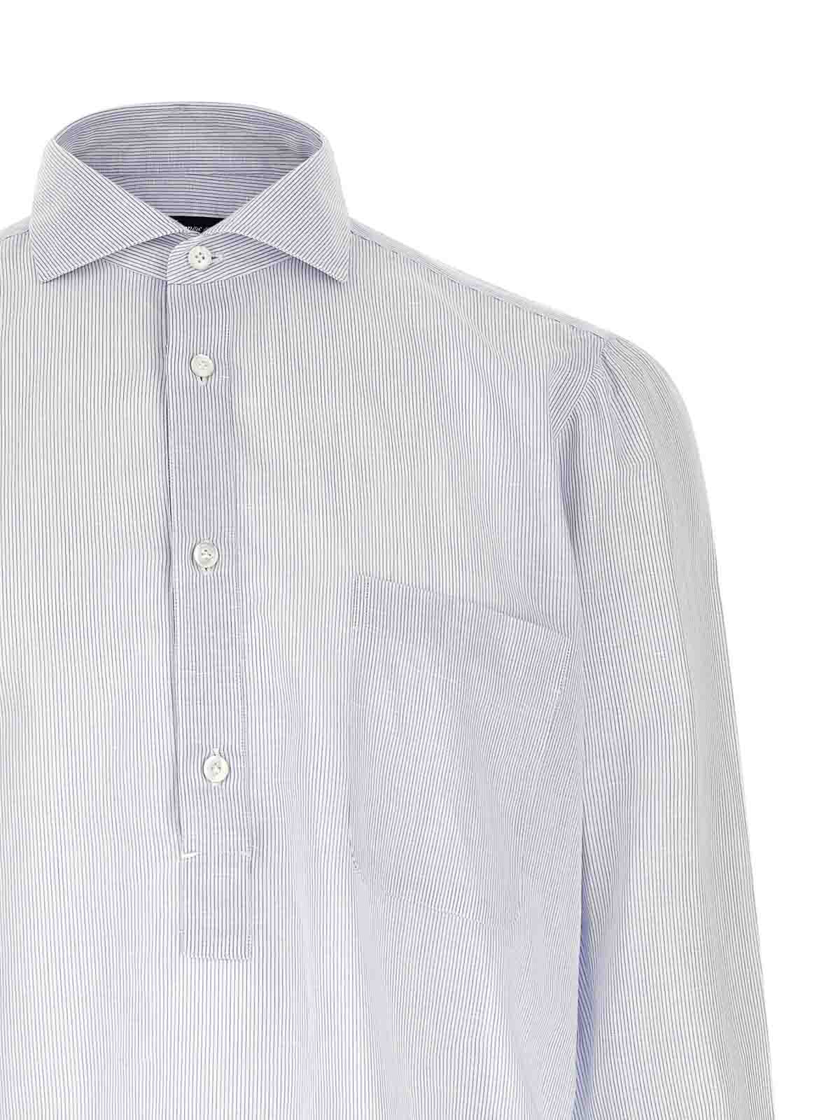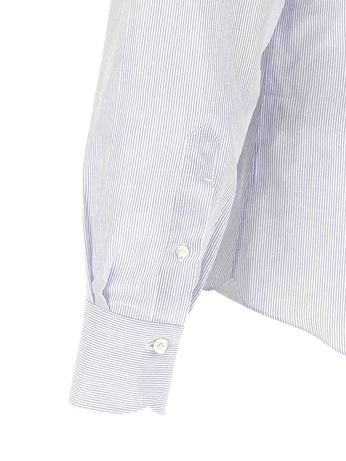 gestreifte Bluse aus Baumwolle und Leinen von Porto, Brusttasche, Knopfverschluss auf der Vorderseite, lange Manschettenärmel, abgerundeter Saum.