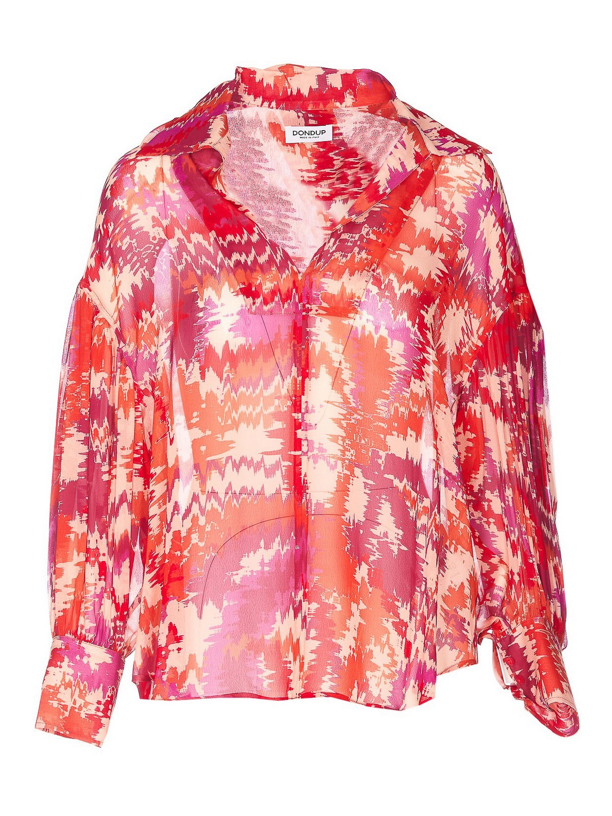 Mehrfarbiges Dondup Hemd, V-Ausschnitt, bedruckt, Knöpfe an den Manschetten