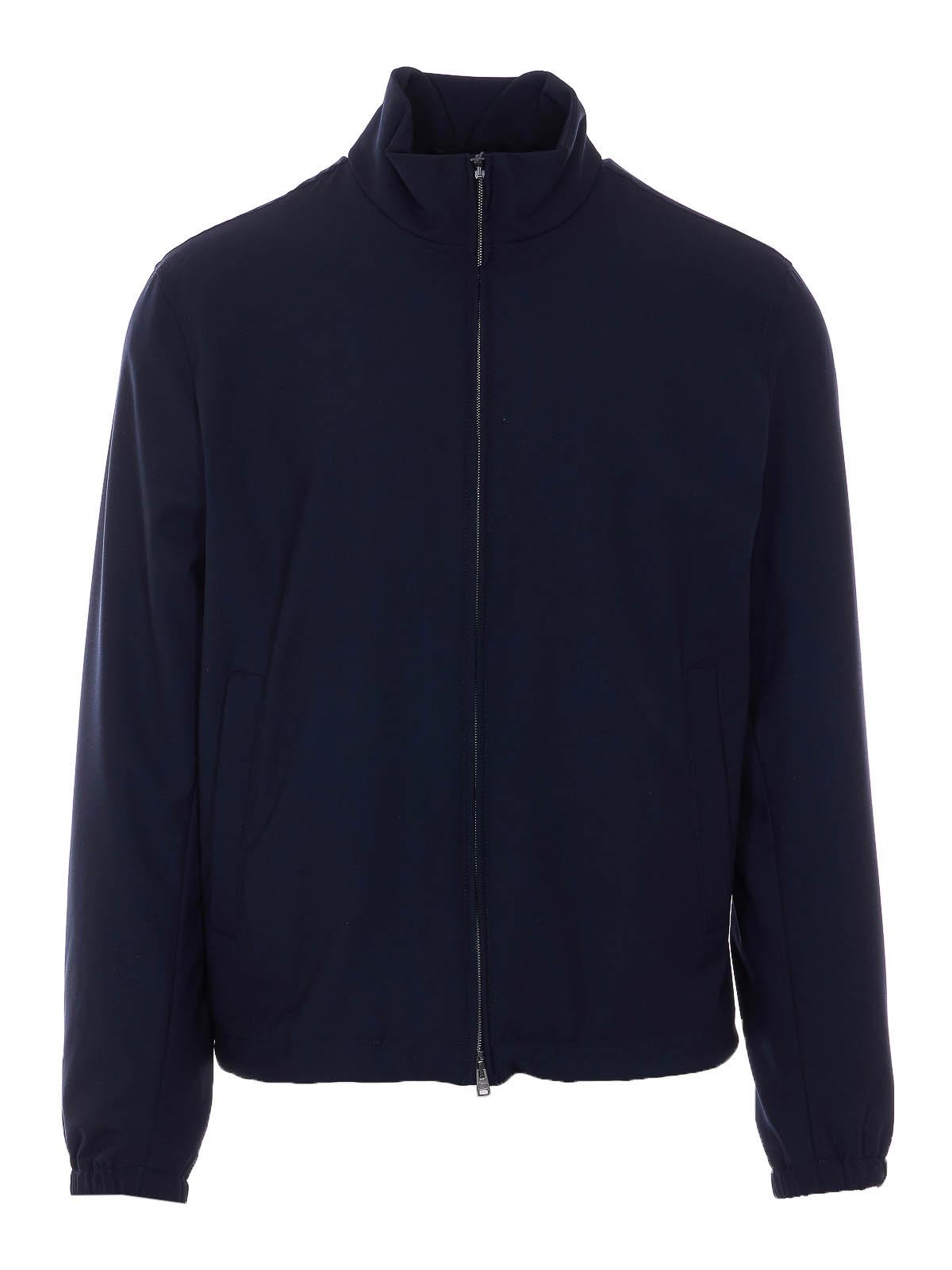 Herno blaue Bomberjacke mit frontalem Reißverschluss, langen Ärmeln, Stehkragen, Taschen mit Knopfverschluss, lange Ärmel