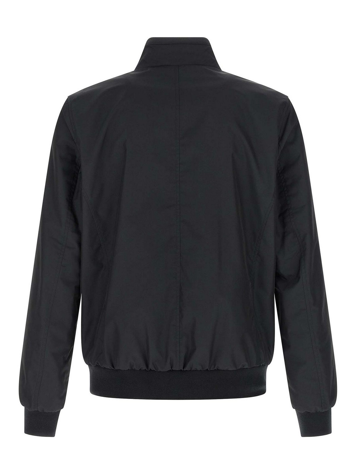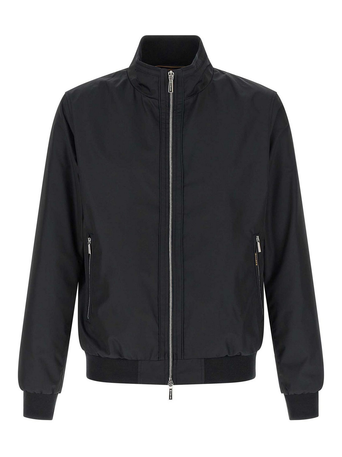 Bomberjacke von manetti-wk' aus leicht wasserabweisendem Material mit gerippten Stretchstrickdetails, Futter, Stehkragen, Frontreißverschluss, Taschen, langen Manschettenärmeln und Stirnband.