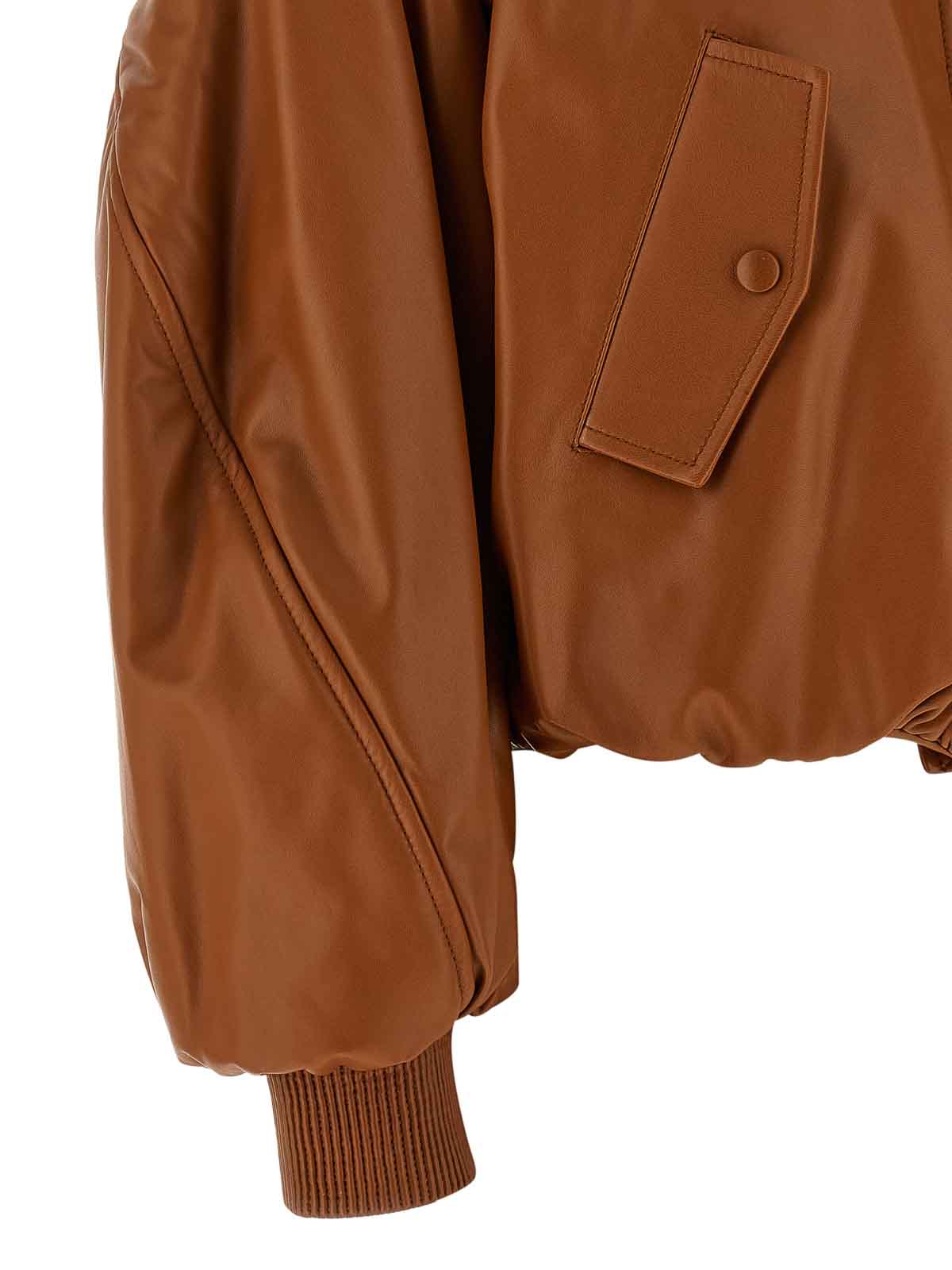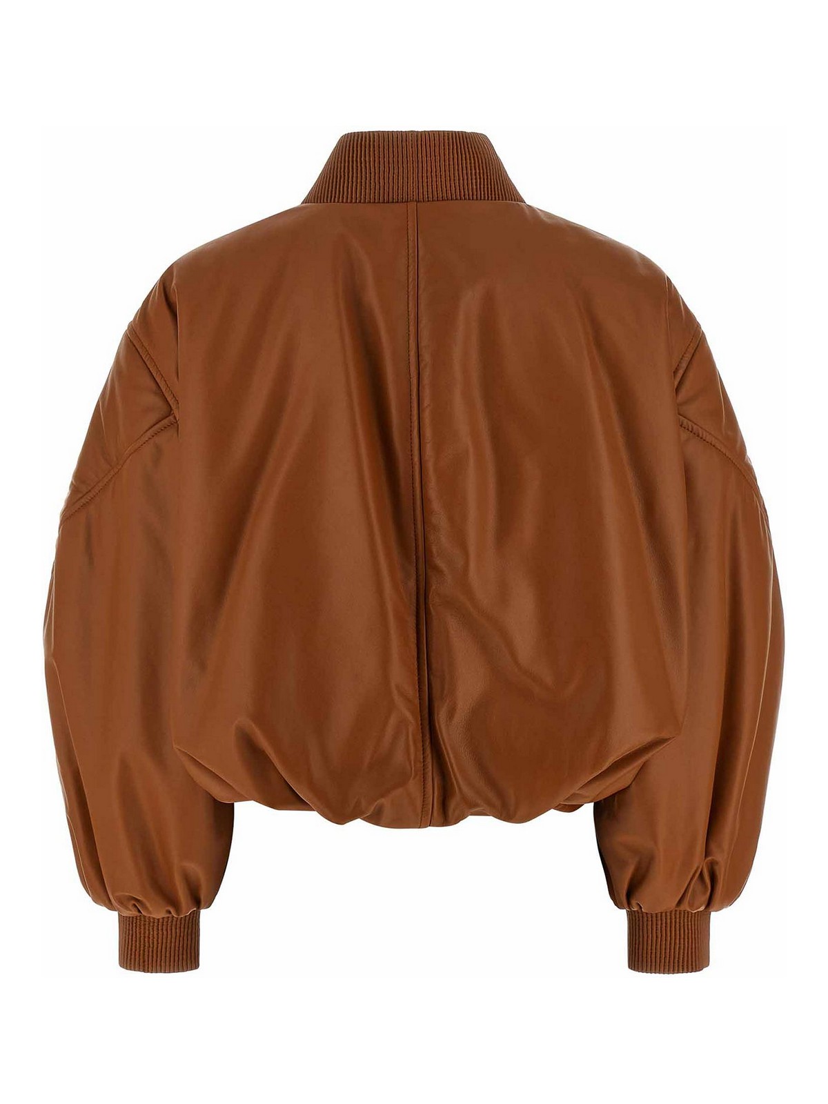 Bomberjacke aus Lammnappa mit Couture-Nähten, geripptem Kragen und Ärmelabschlüssen, Crop-Modell, Stehkragen, Frontreißverschluss, Taschen, lange Ballonärmel mit Manschetten und abgesenkter Schulter, gekräuselter Saum, Futter.