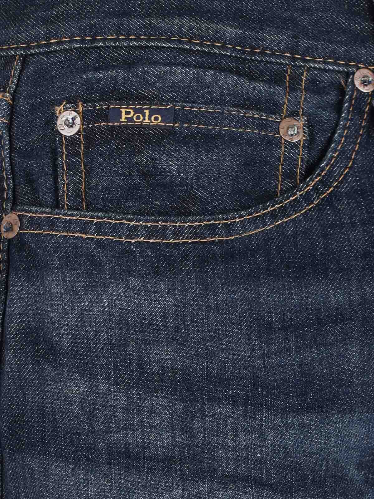 Gerade geschnittene Jeans Polo Ralph Lauren, aus blauem Denim, Ustured-Waschung, Media Taillenbund, Gürtel Passers -by, Knopfverschluss, Fünf-Pocket-Design, Retro-Logostickerei, Retro-Logo-Patch, gerades Bein.