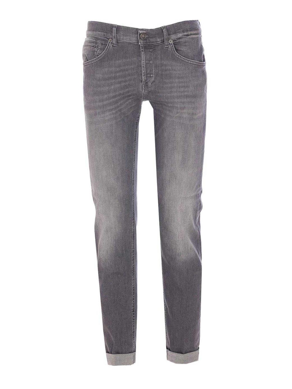 Die Dondup 'George' Jeans kombinieren urbanen Stil und Vielseitigkeit, gefertigt aus grauem Denim, sie zeichnen sich durch eine gerade Silhouette mit einem klassischen Five-Pocket-Design und Knopfverschluss aus, die umgeschlagenen Manschetten und Logo-Detail runden den Look mit einem unverwechselbaren Touch ab, Dondup, George Jeans, Grau, Denim, Five-Pocket-Design, Knopfverschluss, Umschlagmanschetten, Logo-Detail, gerade Passform
