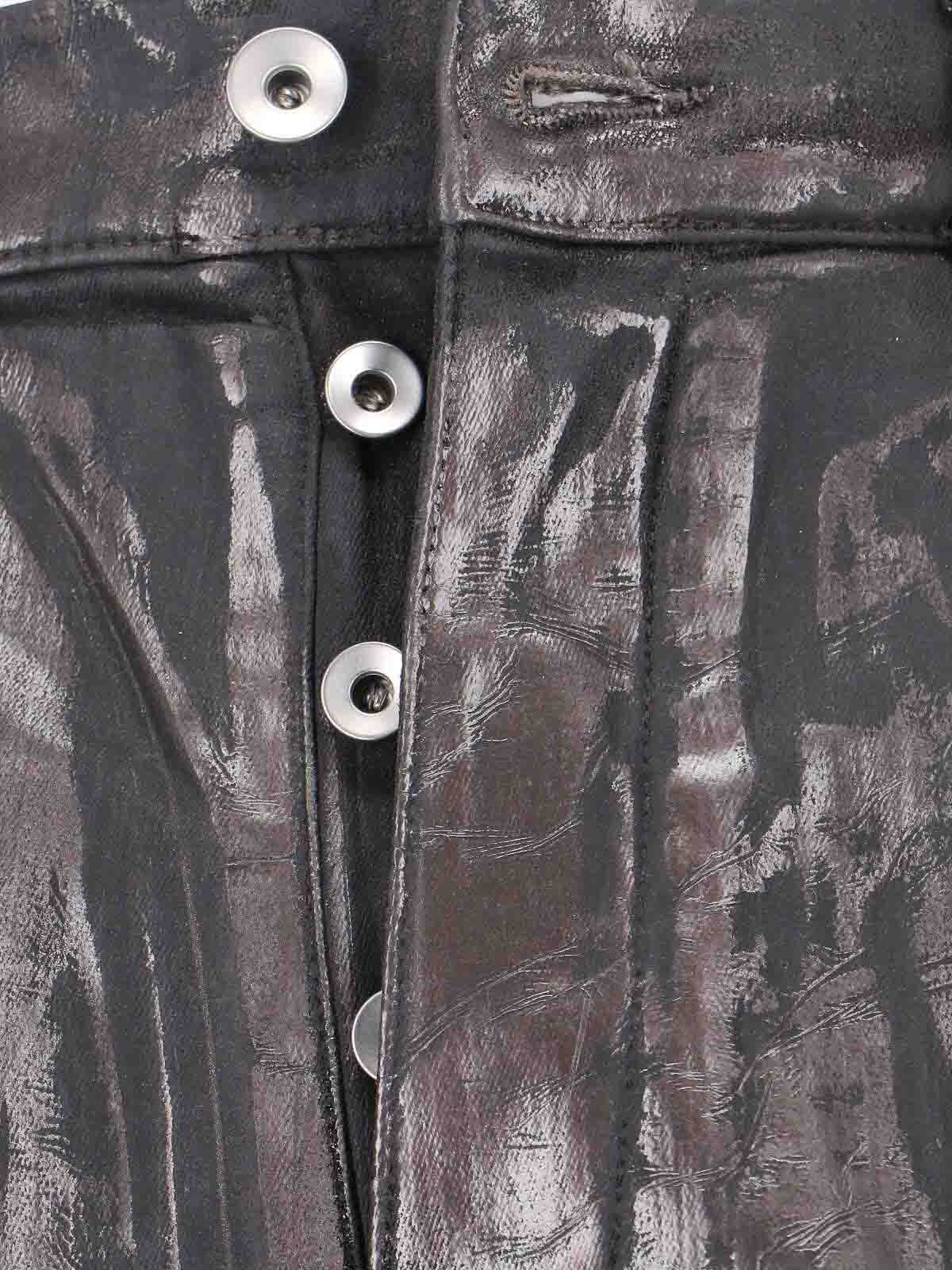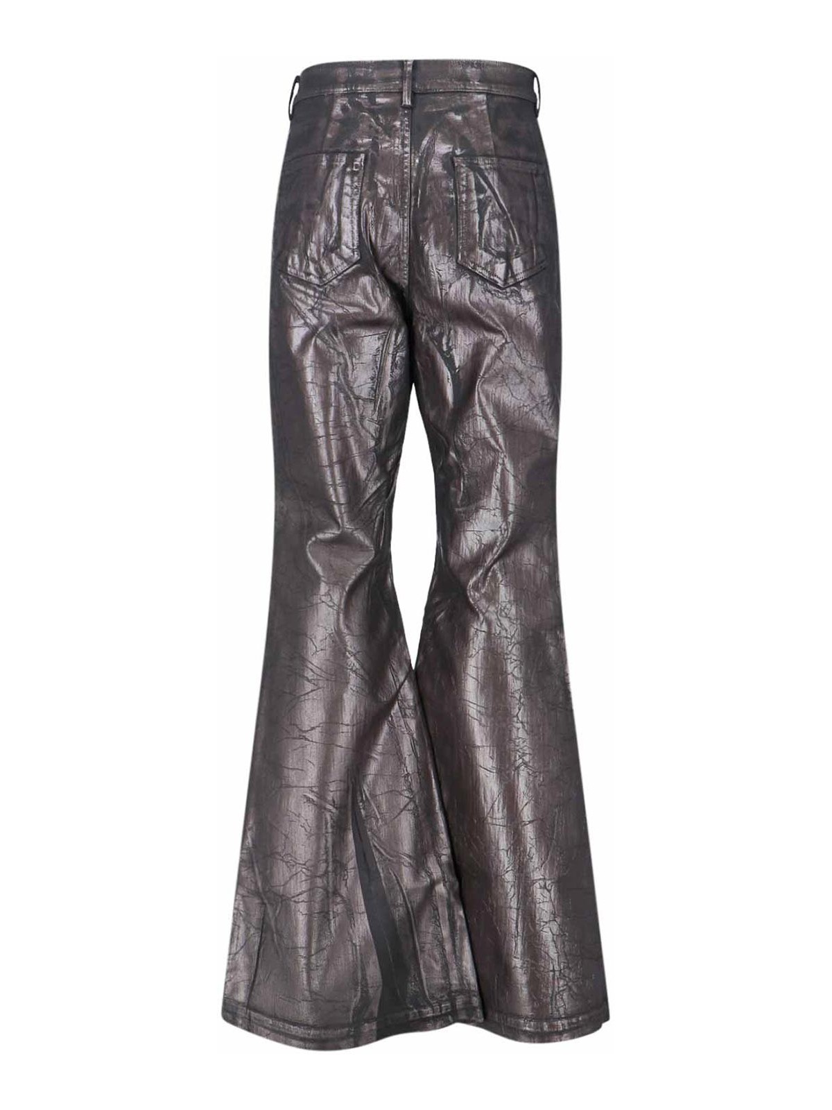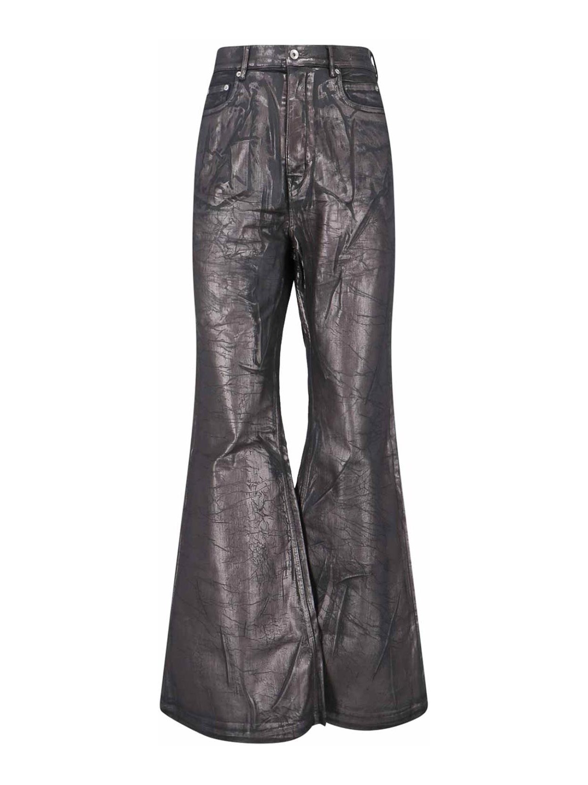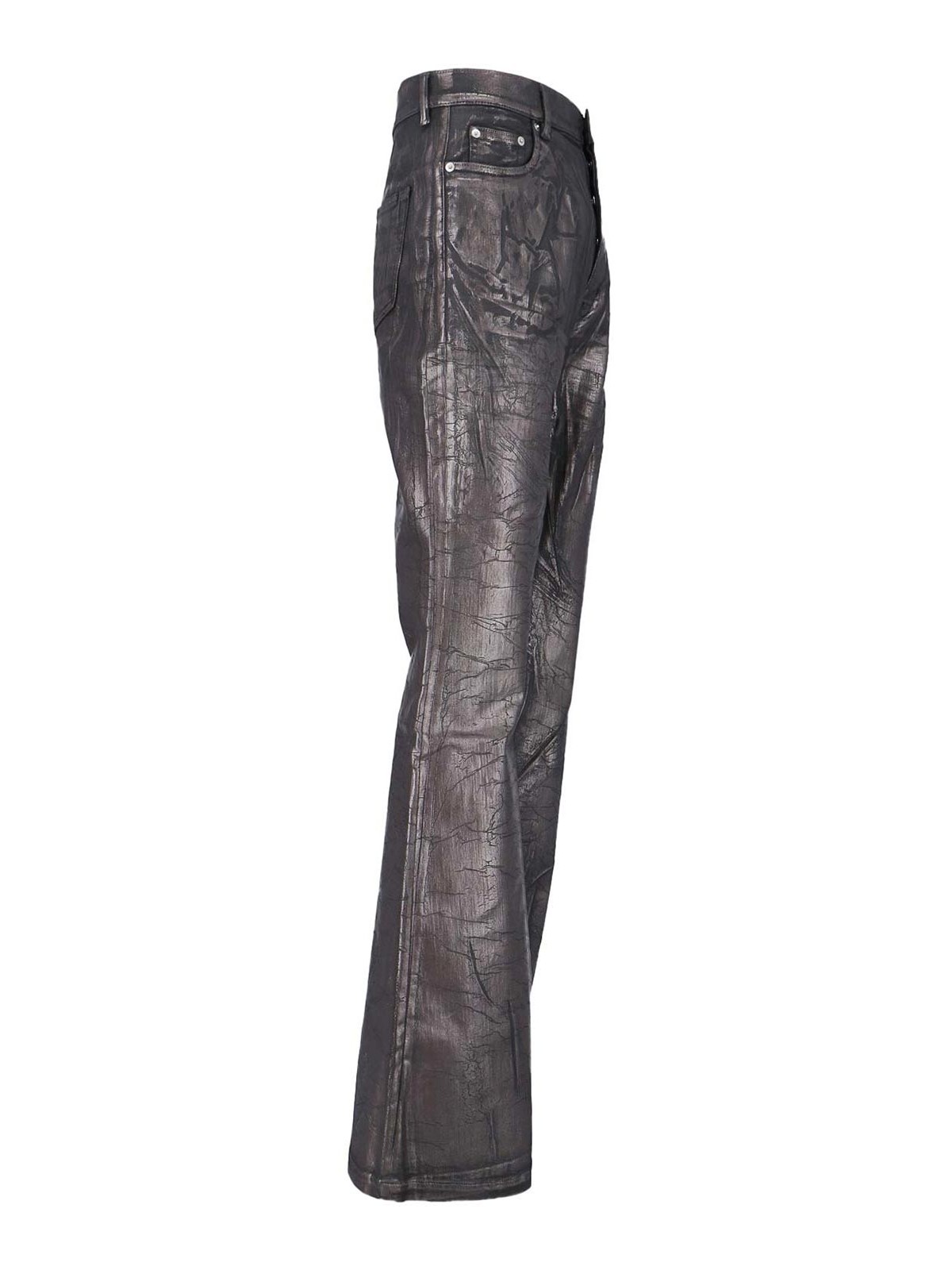 Rick Owens Drkshdw Bootcut-Jeans, aus silberfarbener Baumwollmischung, dunkler Farbton, abgenutzte Waschung, hohe Taille, Gürtelschlaufen, Knopf- und Reißverschluss, Fünf-Taschen-Design, gerades Bein, Tragetasche im Lieferumfang enthalten, Grau, zwei obere Henkel, Logo auf der Vorderseite, ein Innenfach.