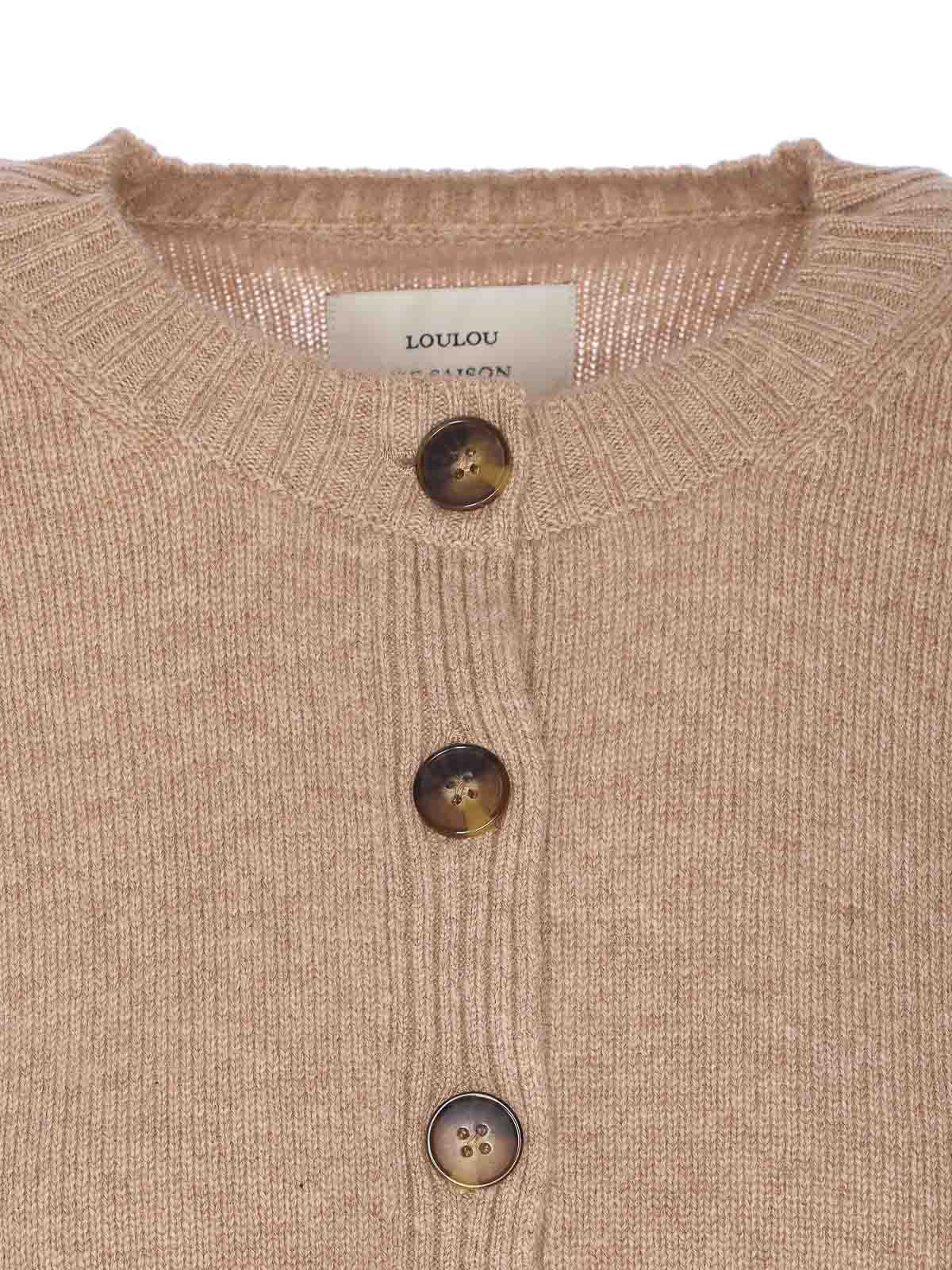 Loulou de saison Beiger Melange-Zephir-Cardigan, Knopfverschluss, kurz geschnitten, Rundhalsausschnitt
