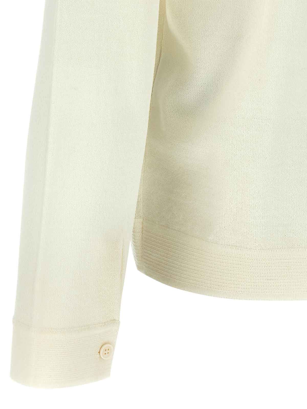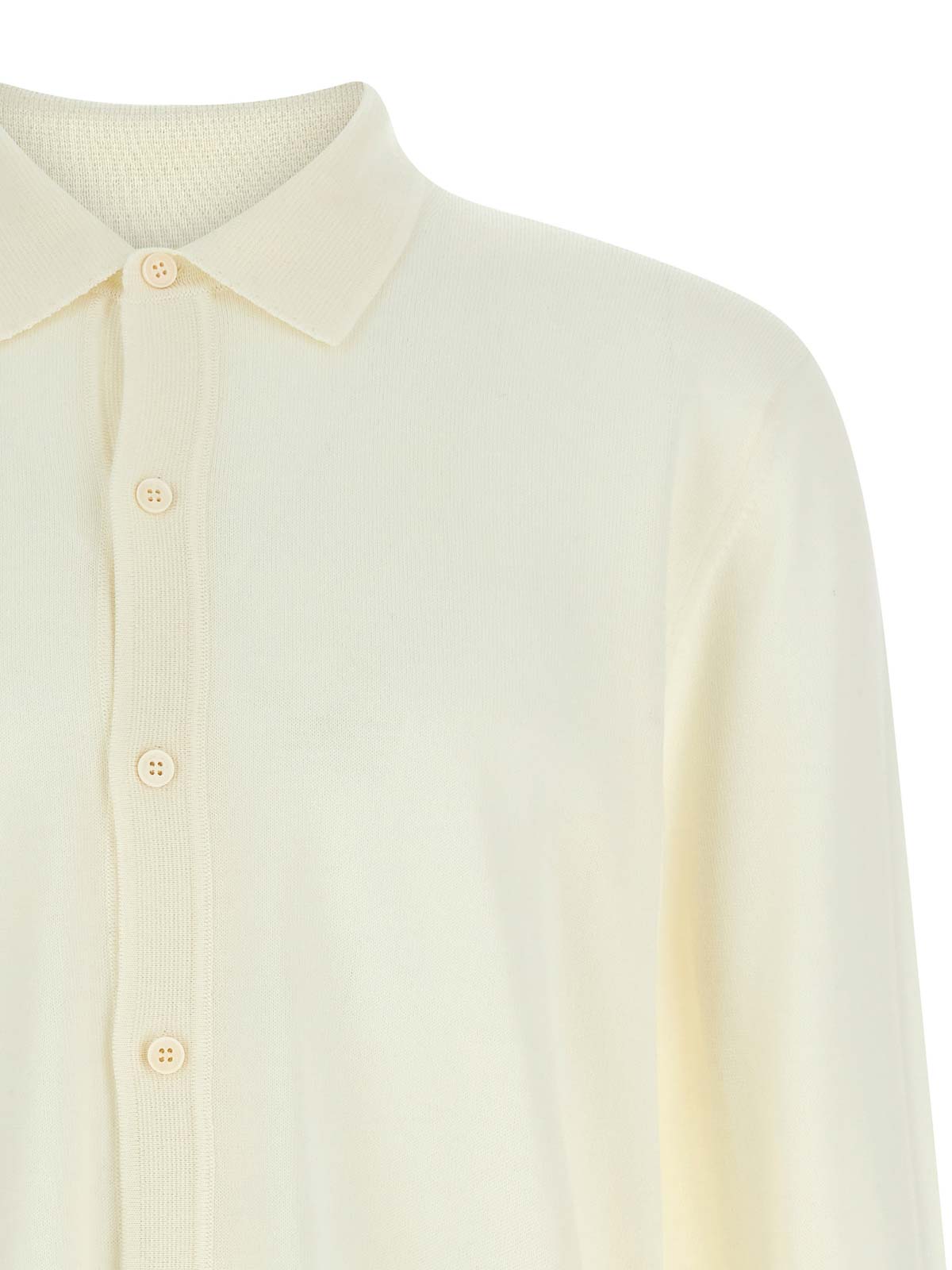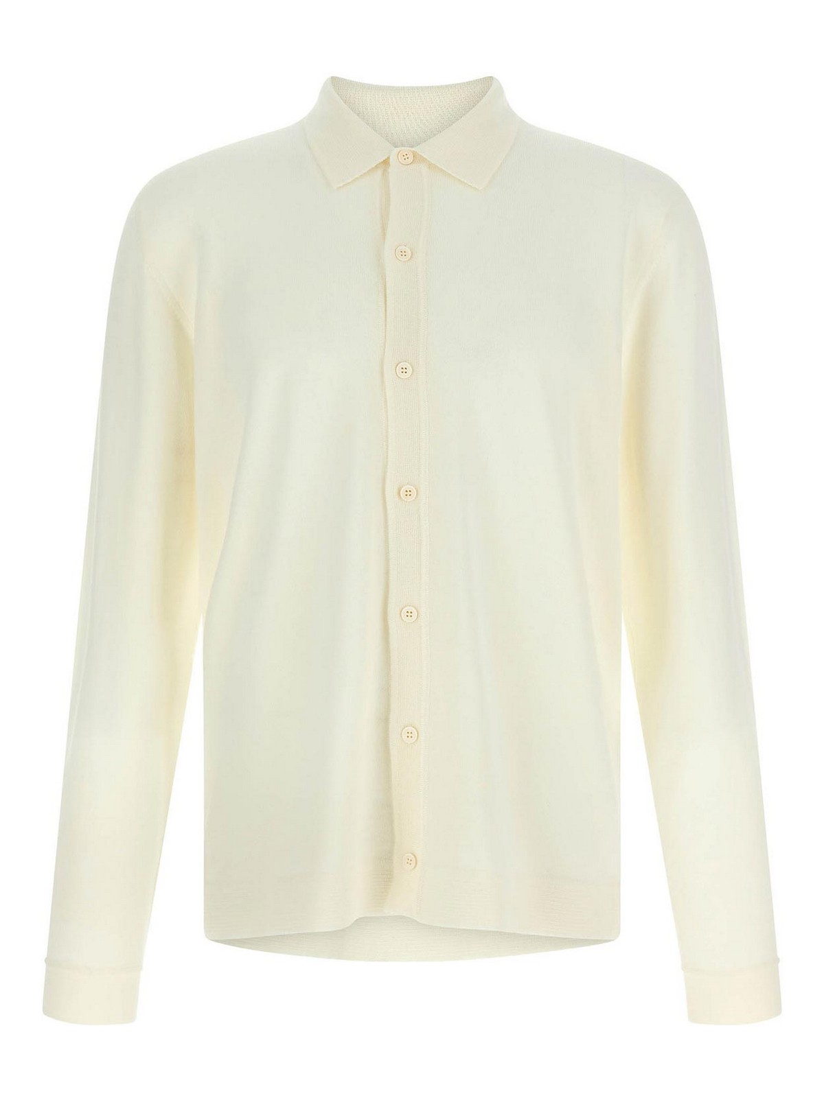 Strickjacke aus Merinowolle mit Hemdkragen, Knopfverschluss auf der Vorderseite und langen Manschettenärmeln.