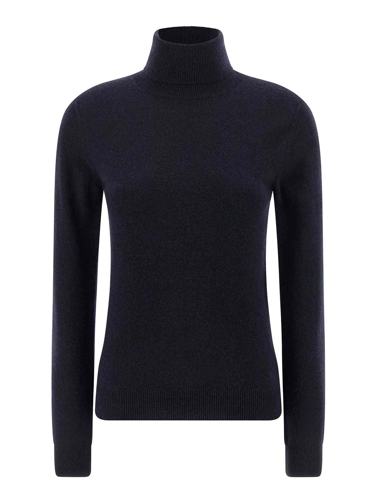 Rollkragenpullover im Standardformat mit umgedrehtem, hochgedrehtem Stehkragen, langen Manschettenärmeln und eingraviertem Logoetikett