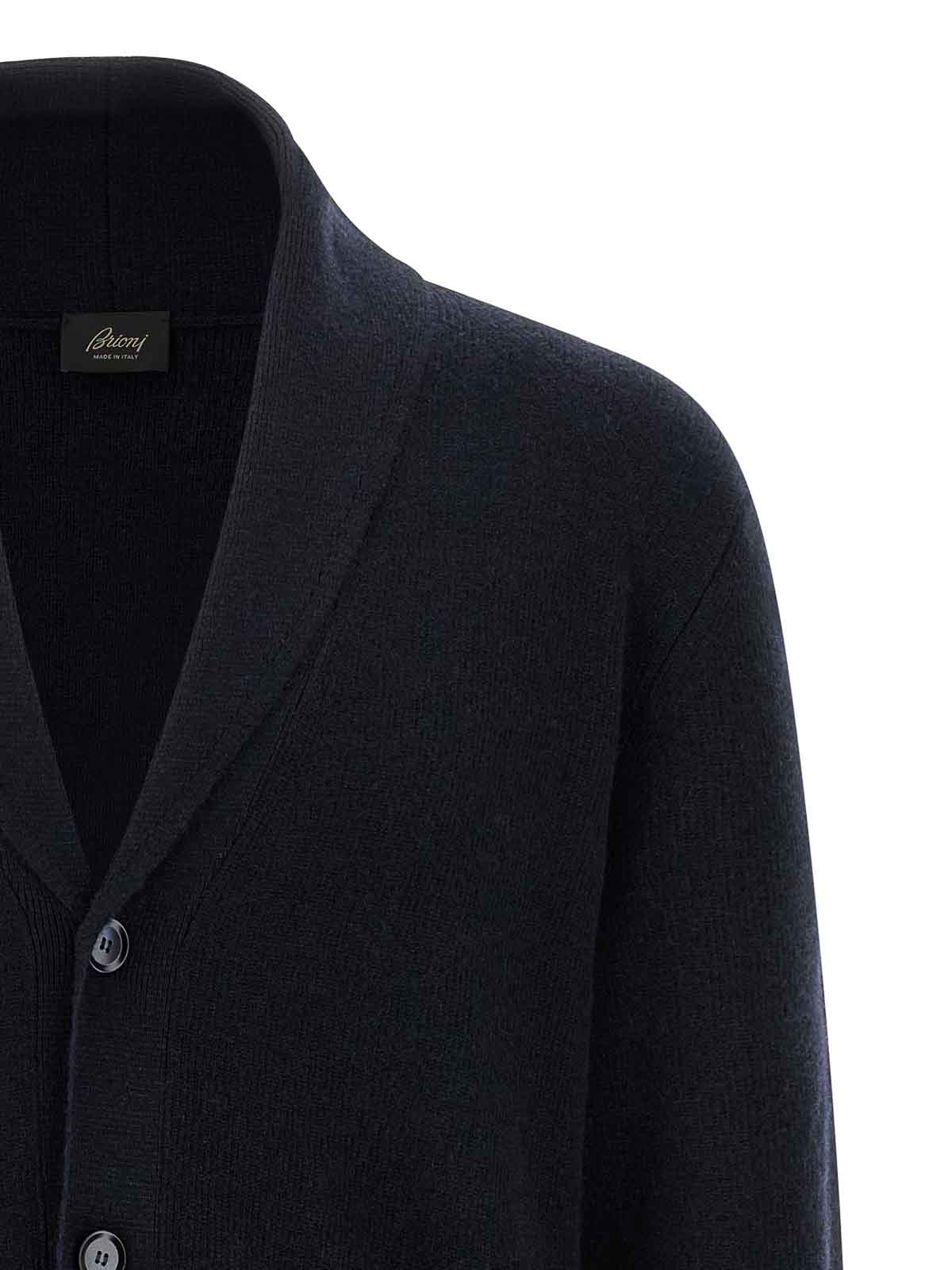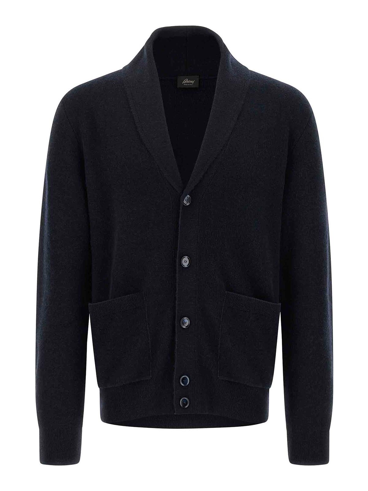 Strickjacke aus Cashmere und Mischgewebe mit Schalkragen, Knopftaschen und langen Manschettenärmeln
