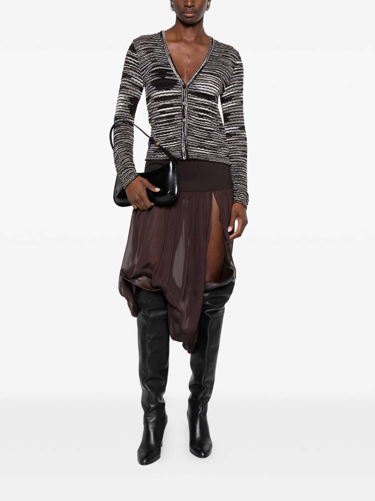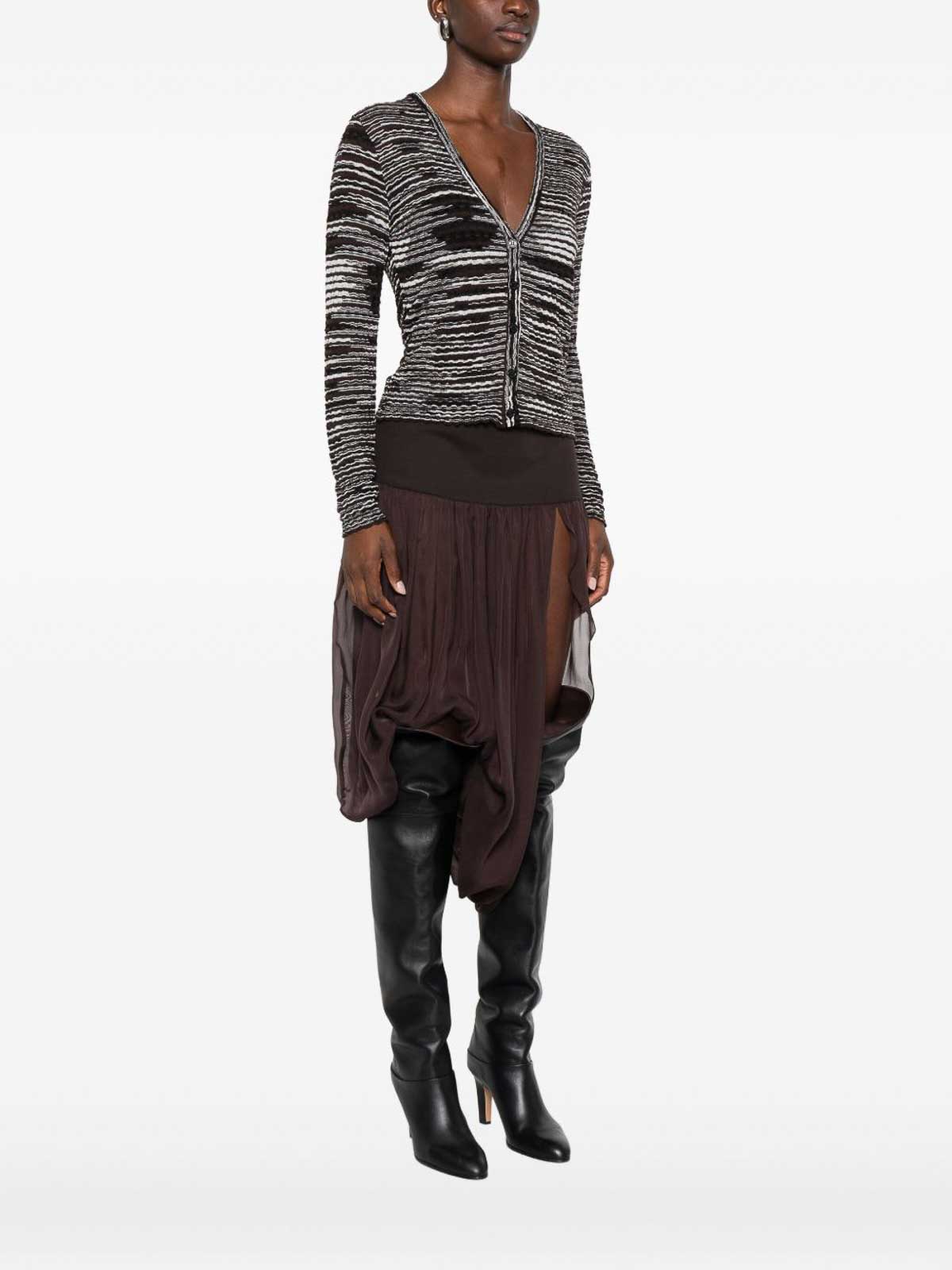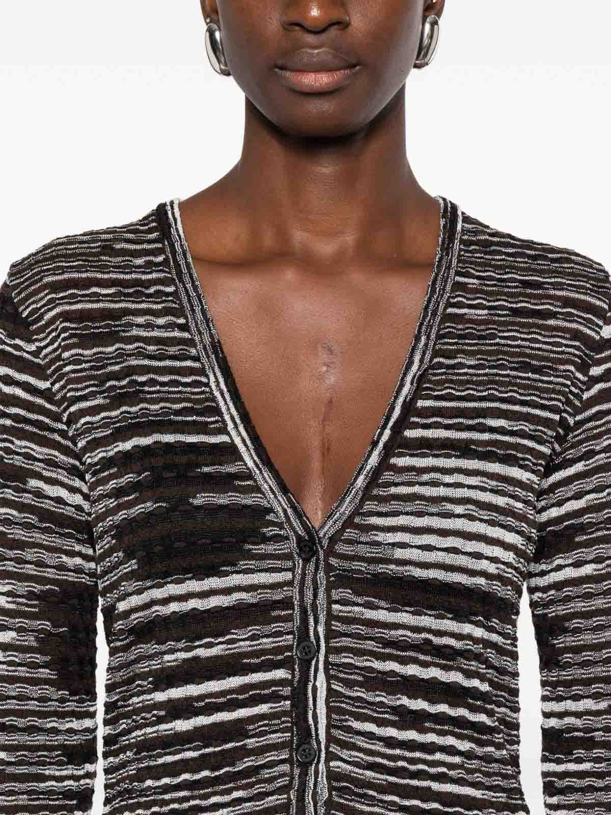 Schwarz gestreiftes Design, V-Ausschnitt, Knopfverschluss auf der Vorderseite, lange Ärmel, gerippter Saum. Der Artikel, den Sie erhalten, kann leicht von dem abgebildeten Artikel abweichen. Dies liegt an der handwerklichen Art, mit der alle Missoni-Produkte hergestellt werden.