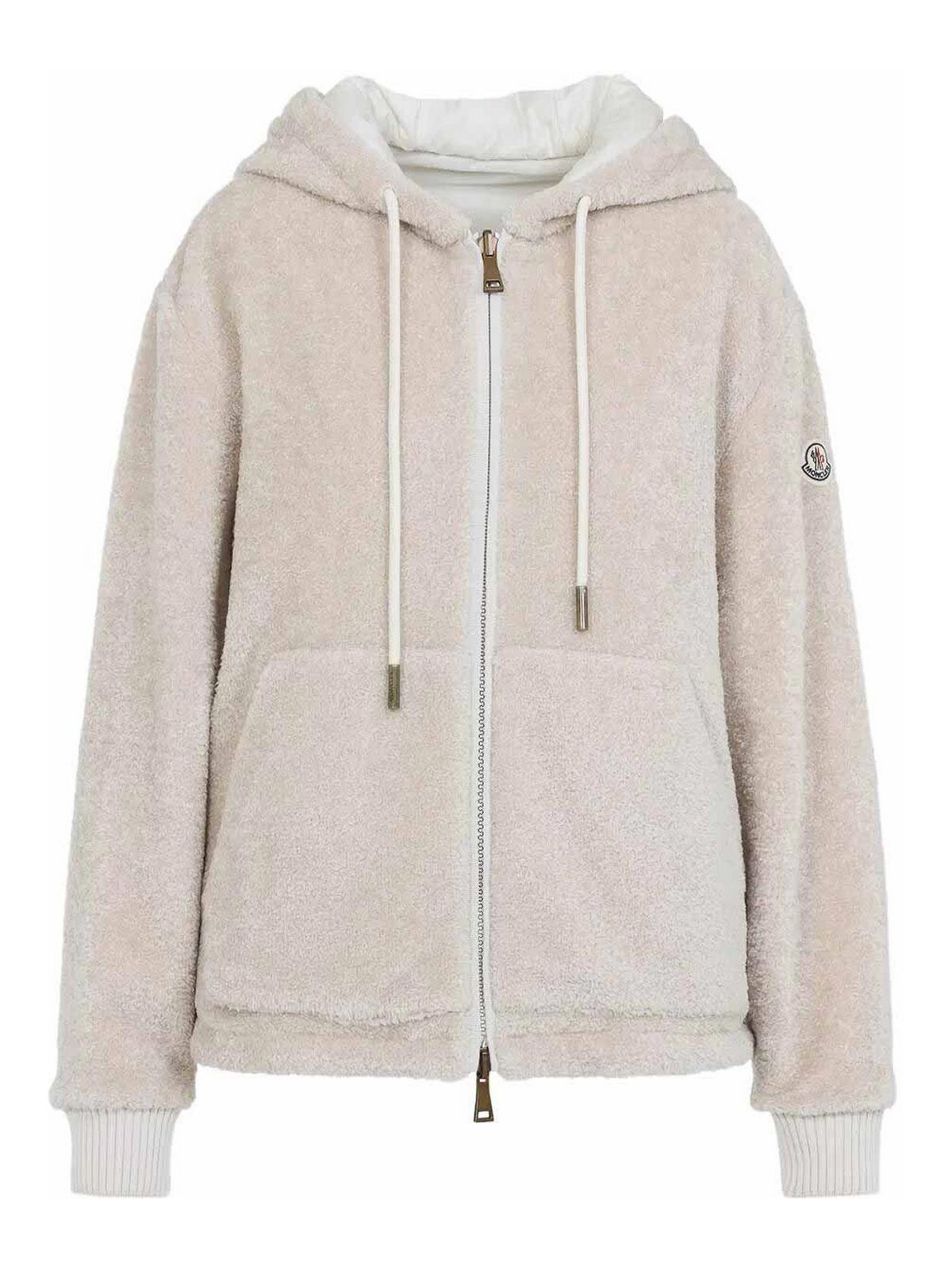Damenjacke mit Reißverschluss aus bequemem Garn, entworfen, um Funktionalität und Stil zu kombinieren. Die weiße Farbe unterstreicht das klare und sportliche Design des Modells.