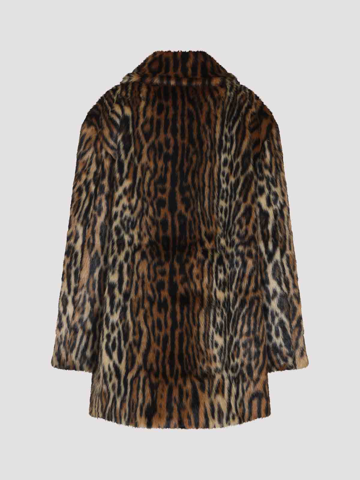 Roberto Cavalli Naturbrauner Mantel, gefertigt und gemischt, spitzer Kragen, geknöpfte Seitentaschen, lange Ärmel, gerader Saum, Tierprint, vollständig schwarz