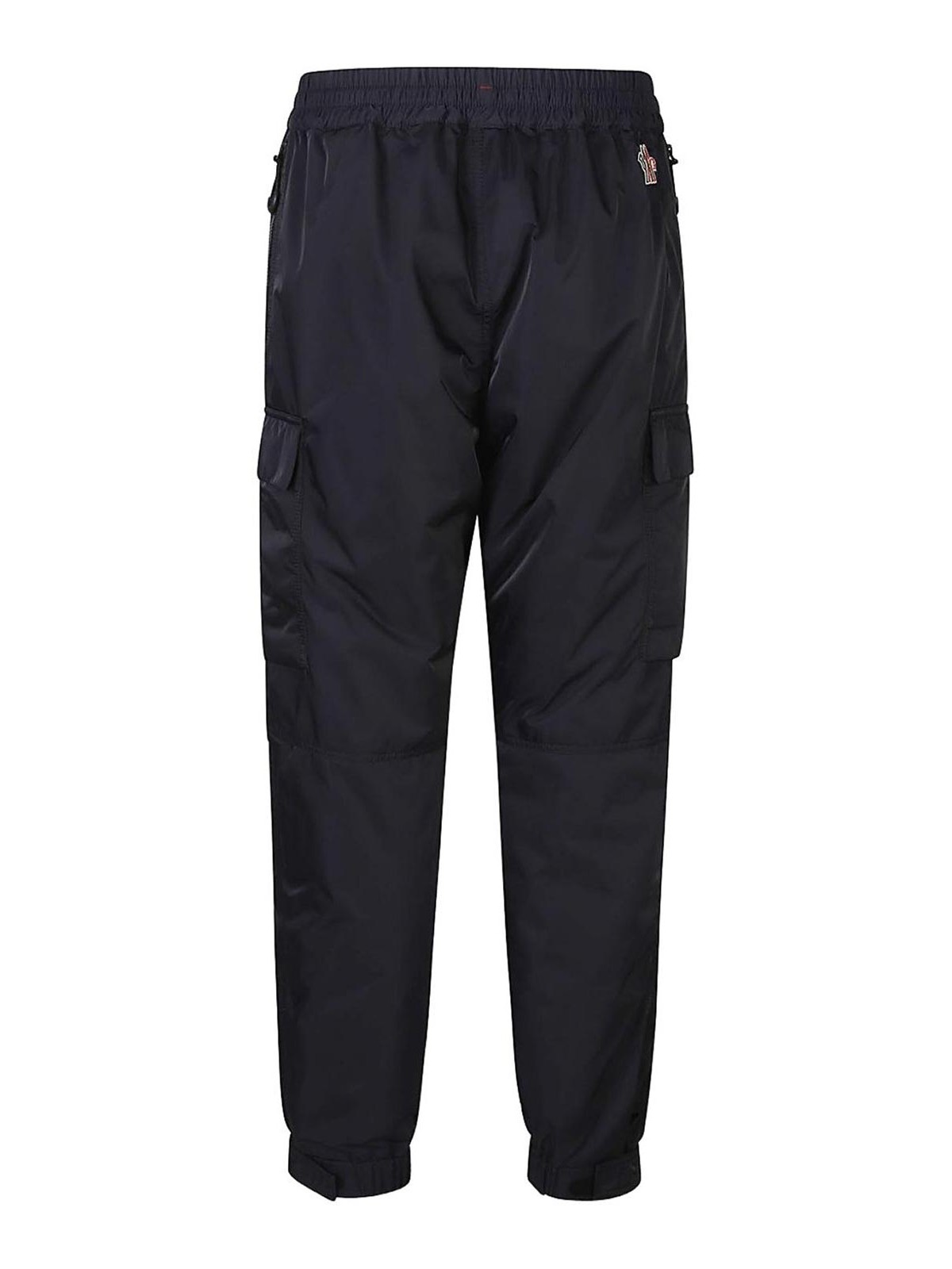 Marineblaue Cargohose von Moncler Grenoble aus strapazierfähigem Gabardine mit mehreren praktischen Taschen, elastischen Bündchen und einer bequemen Passform, die auf Leistung und Stil ausgelegt ist, perfekt für Abenteuer in den Bergen oder urbane Looks mit technischem Touch.