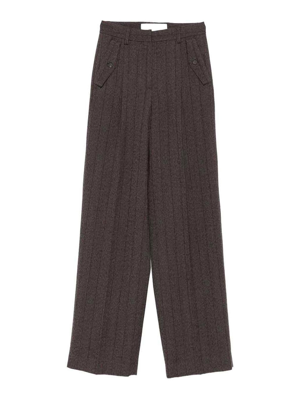 Braunes Nadelstreifenmuster, plissierte Seitenklappe, Taschen