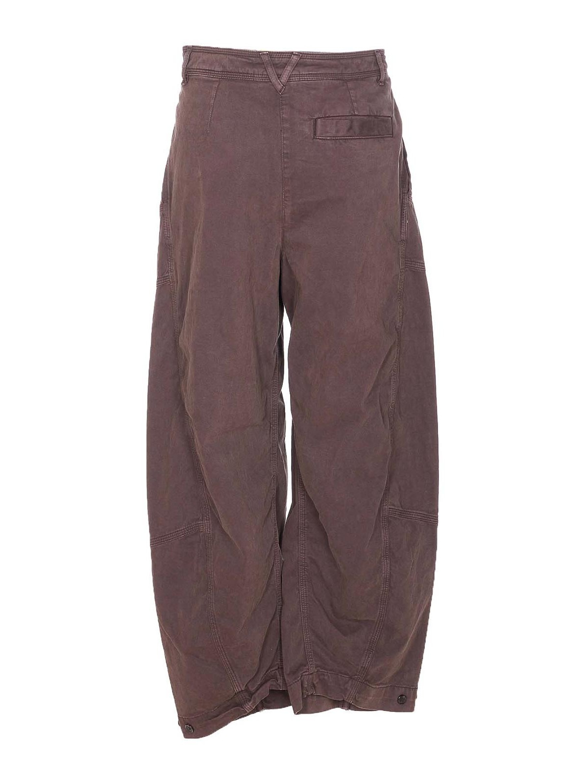Pinko braune Pancarre-Hose, Knopf- und Reißverschluss, Seitentaschen, weites Bein, Ballon-Passform, Riemen an der Unterseite