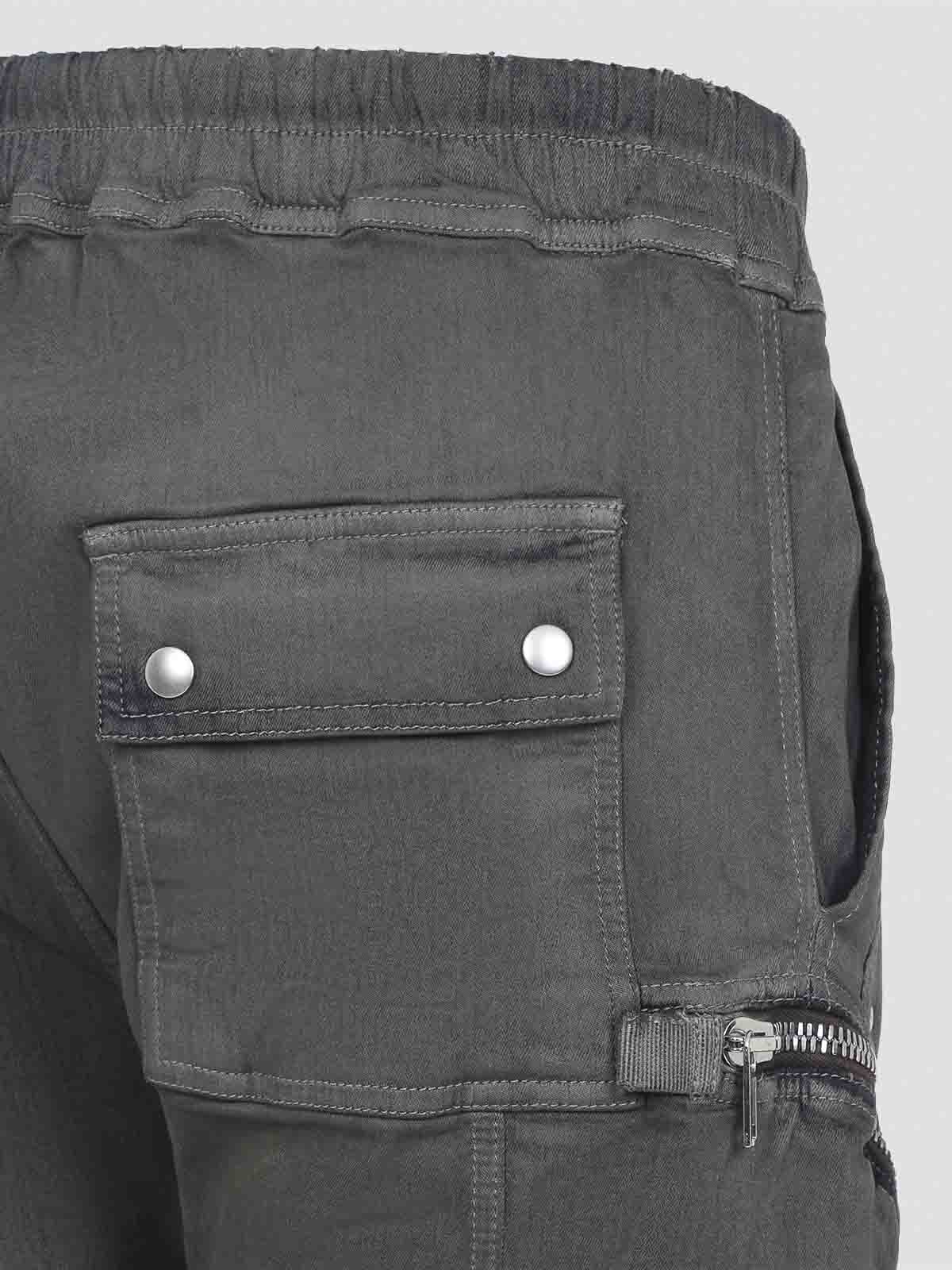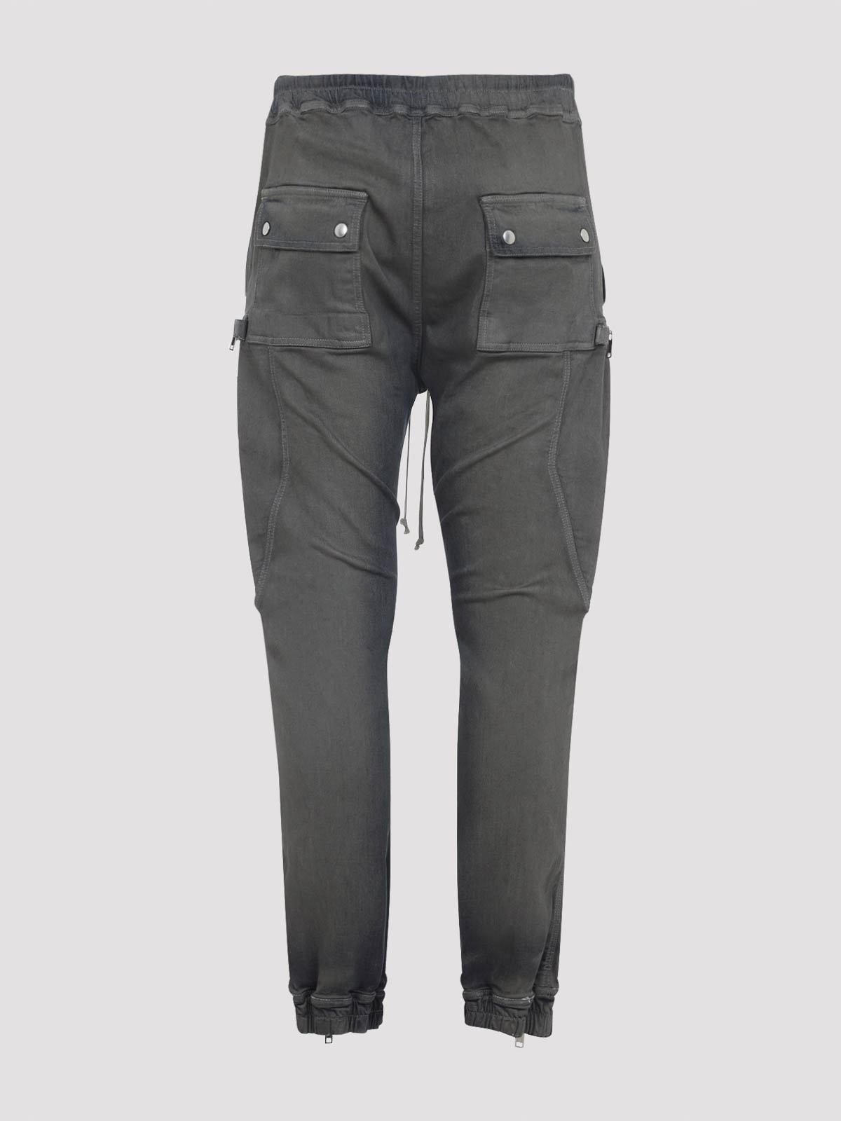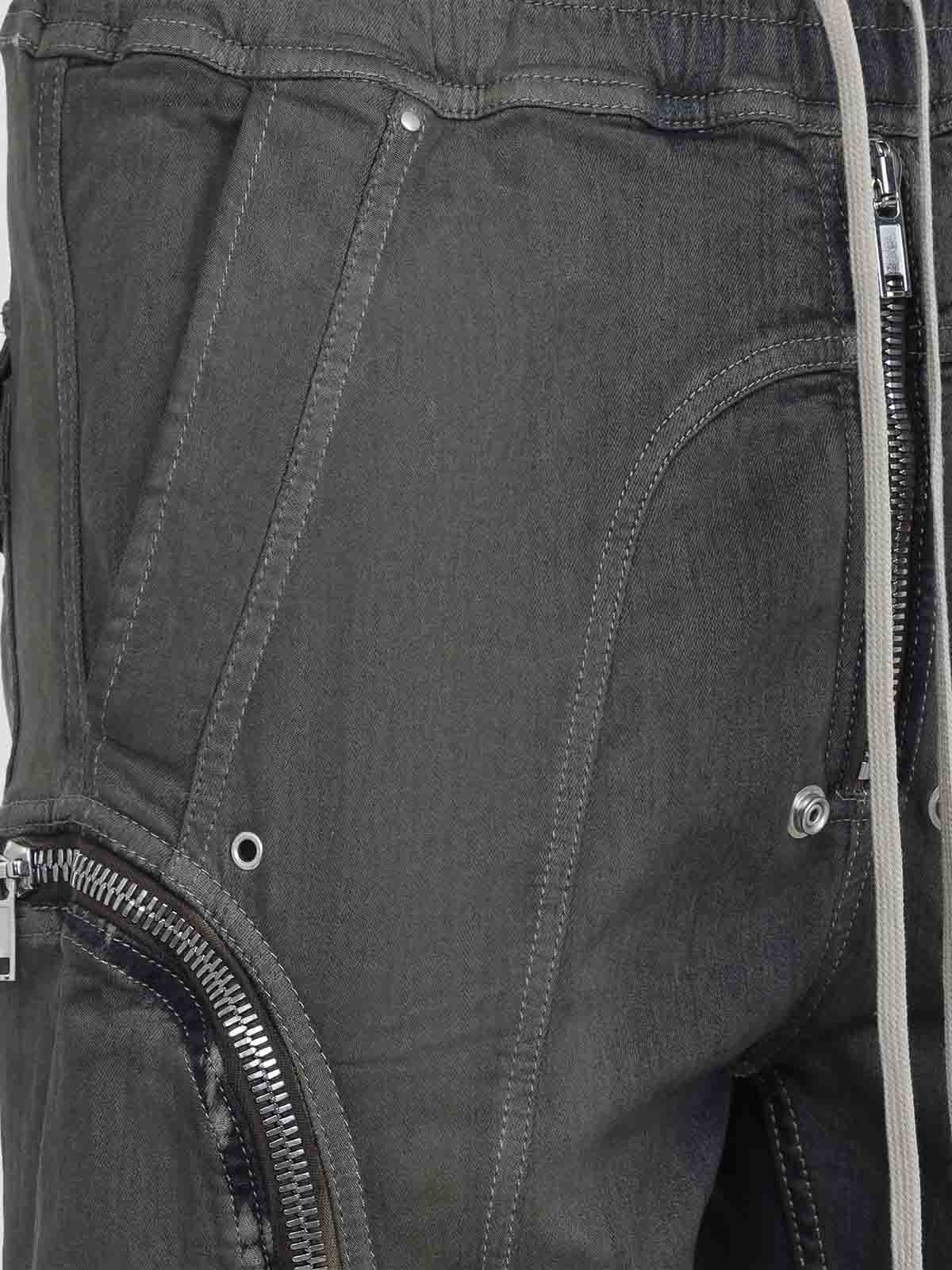 Rick Owens dunkelbraune Bauhaus-Cargohose, gefertigt und aus Faser, elastischer Bund, kontrastfarbener weißer Kordelzug, Seitentaschen mit Reißverschluss, Gesäßklappe, geknöpfte Taschen, Seitentaschen mit Reißverschluss am Saum, elastischer gerader Saum, Ton mit Nieten