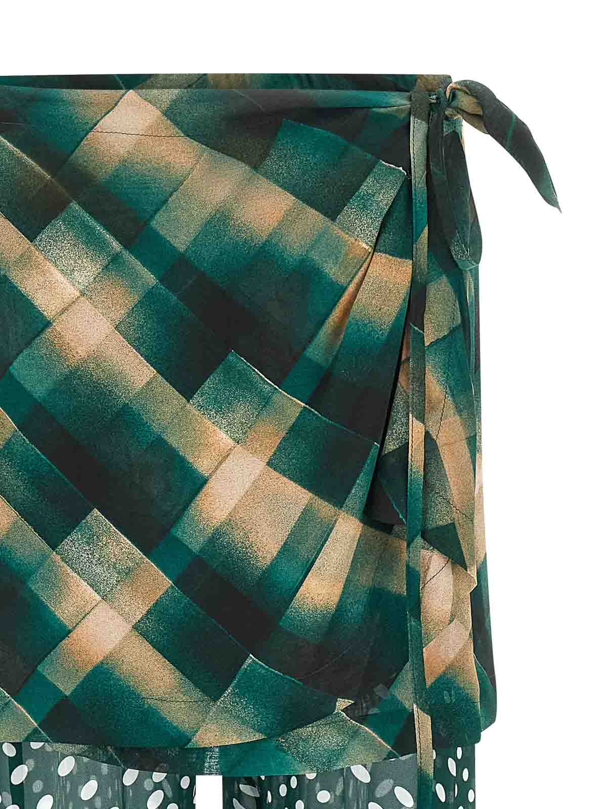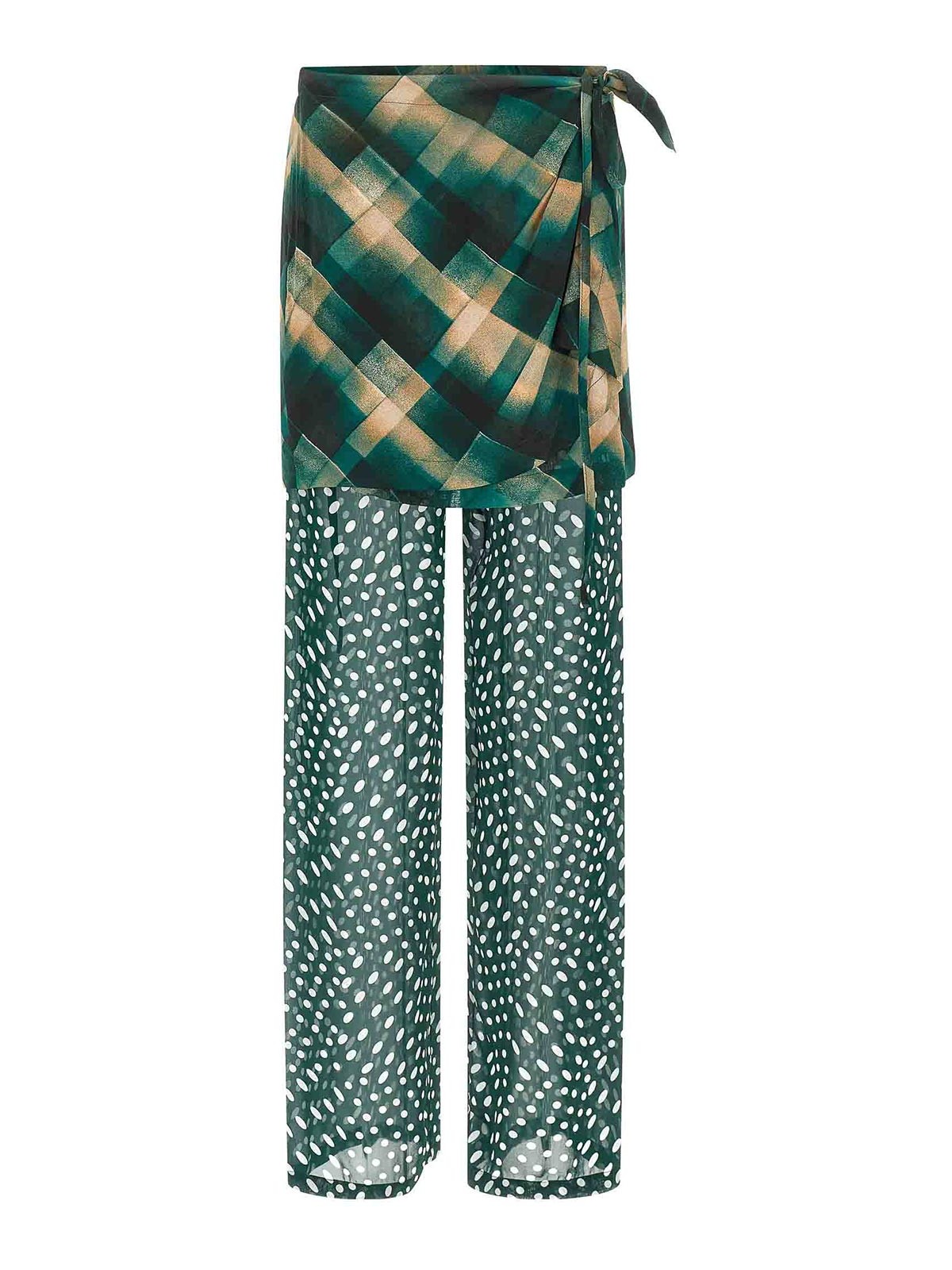 pritty' Hose aus halbtransparenter Viskose mit überlappendem Minirock, kontrastfarbenem Muster, geradem Bein, Geldbörsenverschluss mit seitlichem Kordelzug.