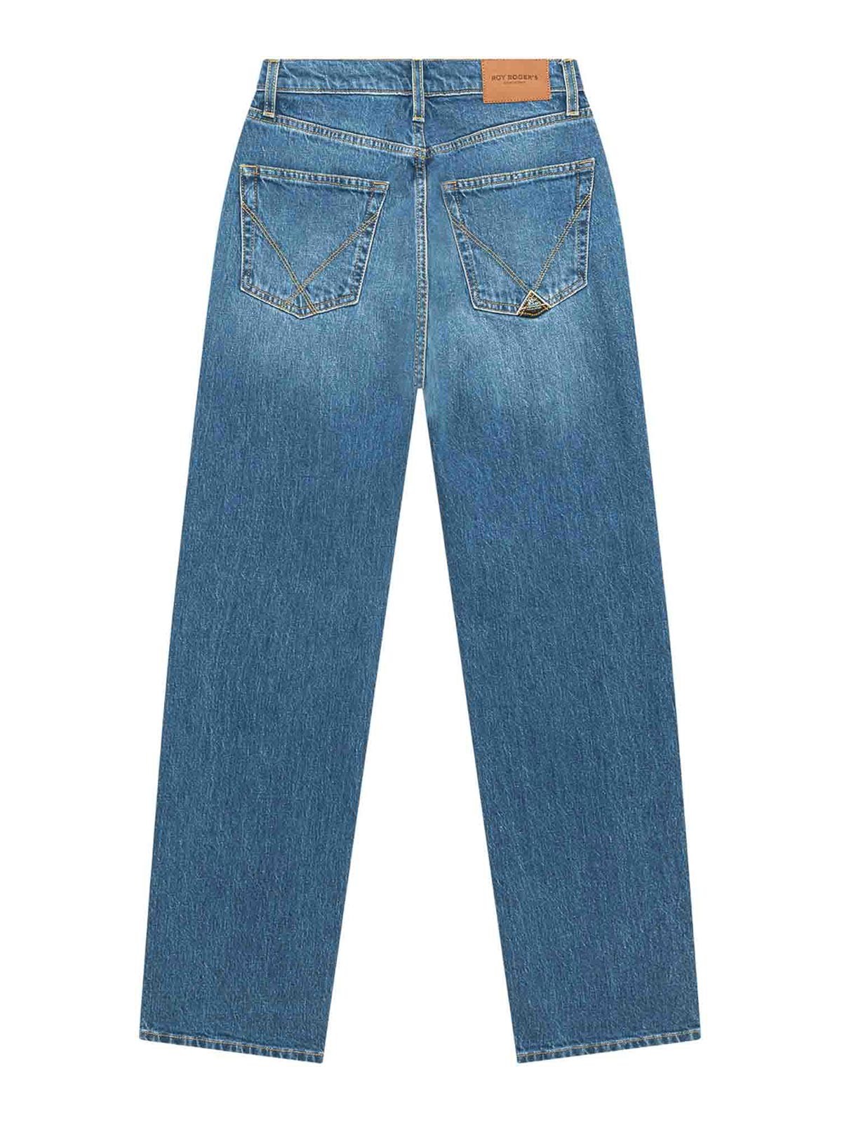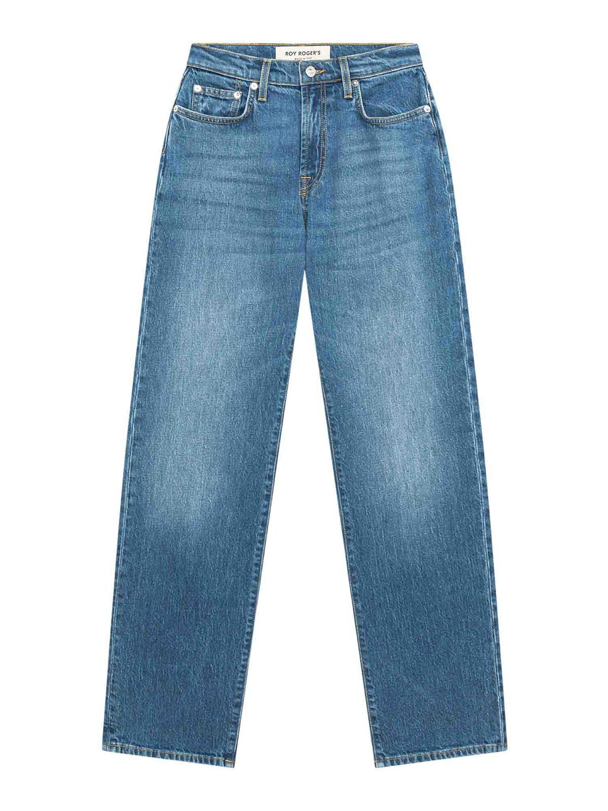Roy Rogers Regular 90er Stramford Jeans in leichtem Wash Stretch Denim Roy Rogers Designer-Jeans aus Light Wash Stretch Denim und leichter Schnurrbart auf der Vorderseite für einen abgenutzten und authentischen Effekt. das reguläre 90er-Stramford-Modell zeichnet sich durch eine gerade und moderne Linie aus, inspiriert vom Stil der 90er. Die mittlere Taille mit Gürtelschlaufen, der Logo-Knopf- und Reißverschluss und die Taschen mit dem aufgesetzten Roy Rogers Label verstärken die Liebe zum Detail typisch für das Marke. Ein ikonisches, bequemes und vielseitiges Kleidungsstück, perfekt für einen lässigen Look mit einem Vintage-Look Geschmack.