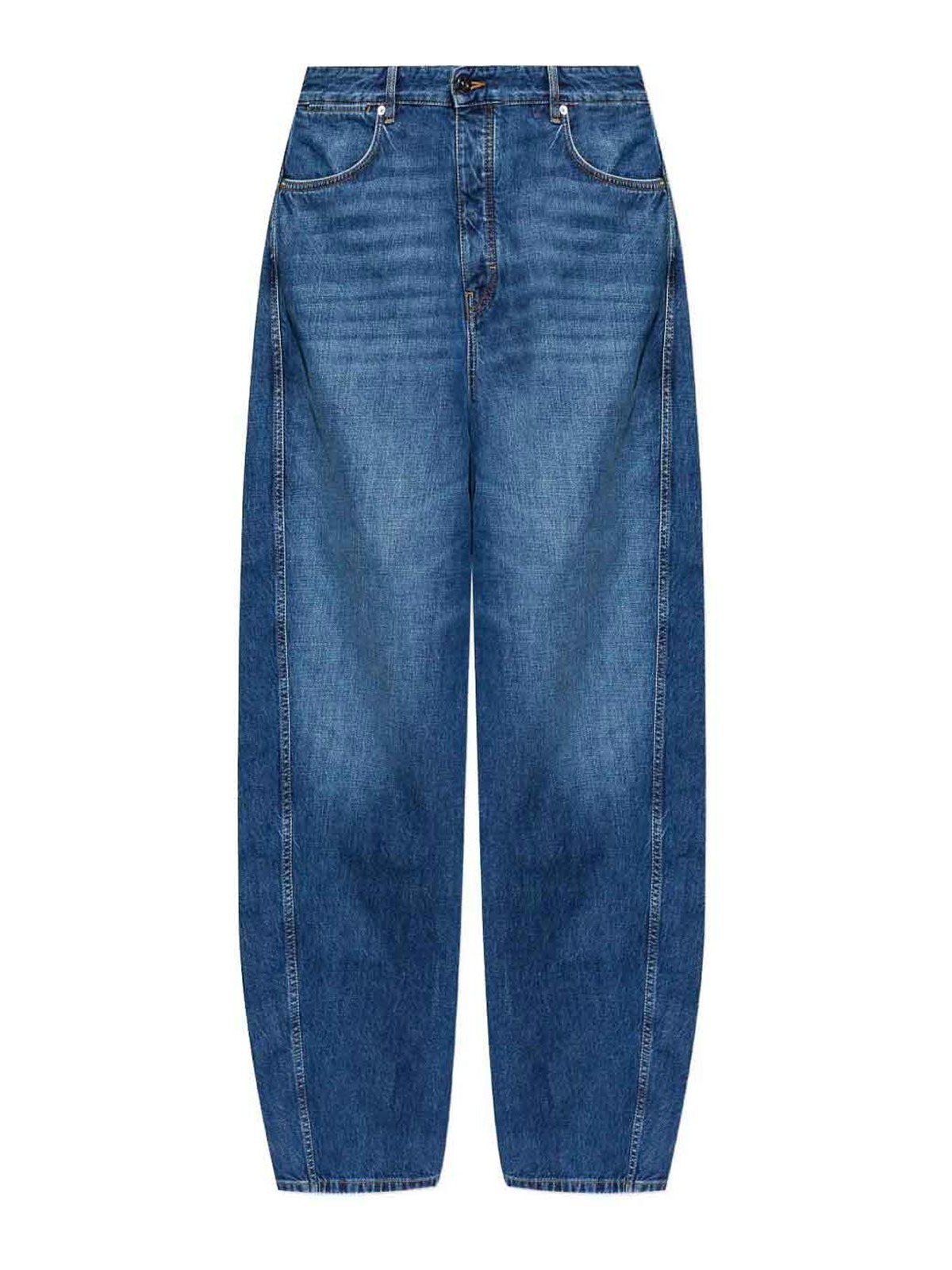 Jeanshose mit Couture-Stickdetails und einer klaren Linie.