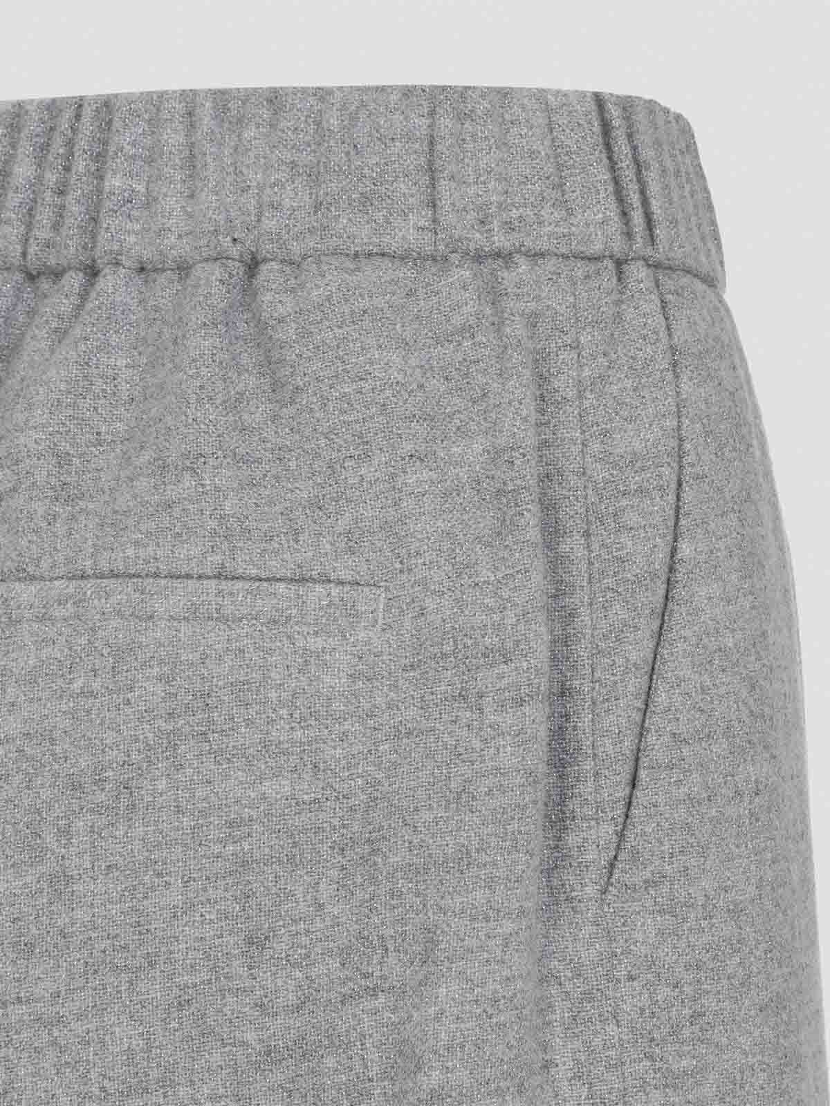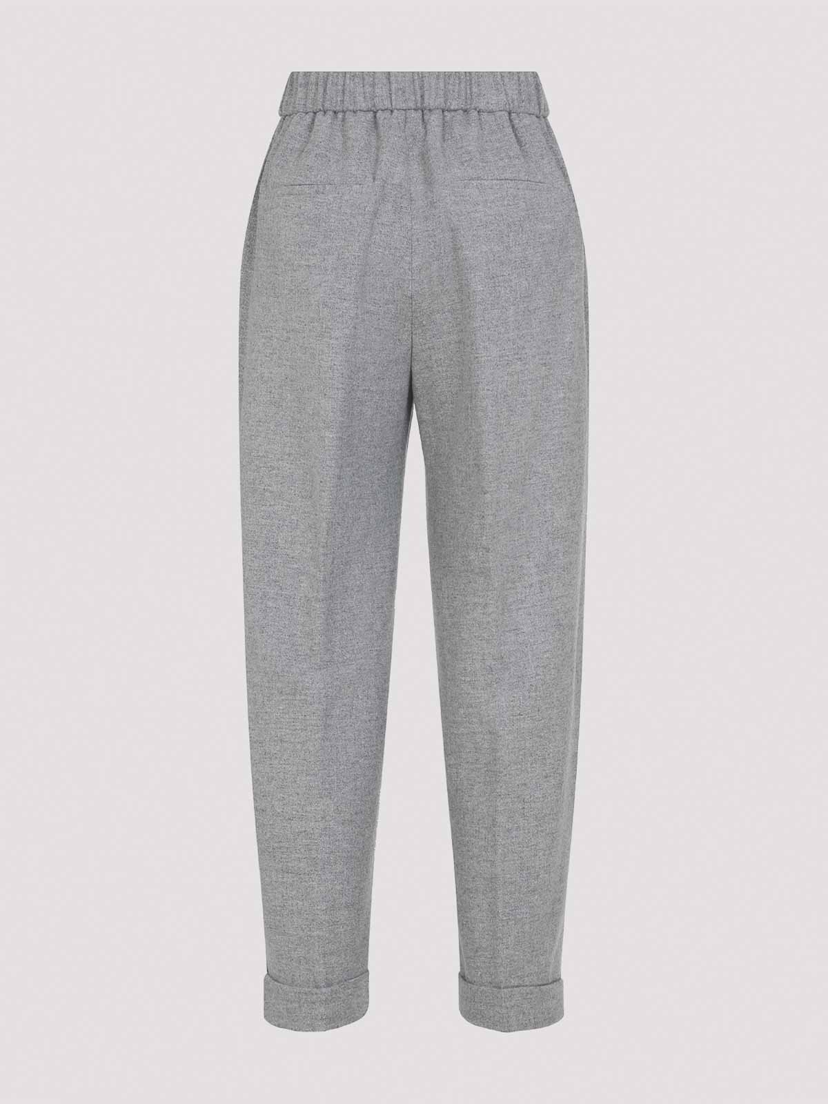Graue Peserico-Hose aus Melange-Grau mit durchgehend elastischem Bund, schräge Taschen, zwei Leistentaschen auf der Rückseite, gerades Bein, umgeschlagener Saum
