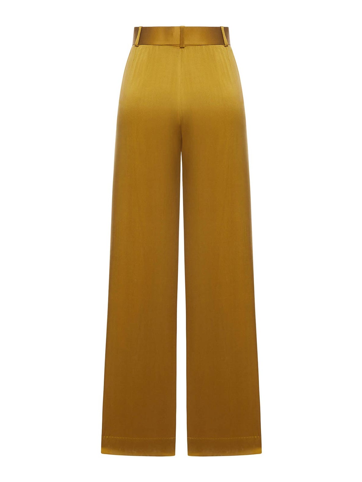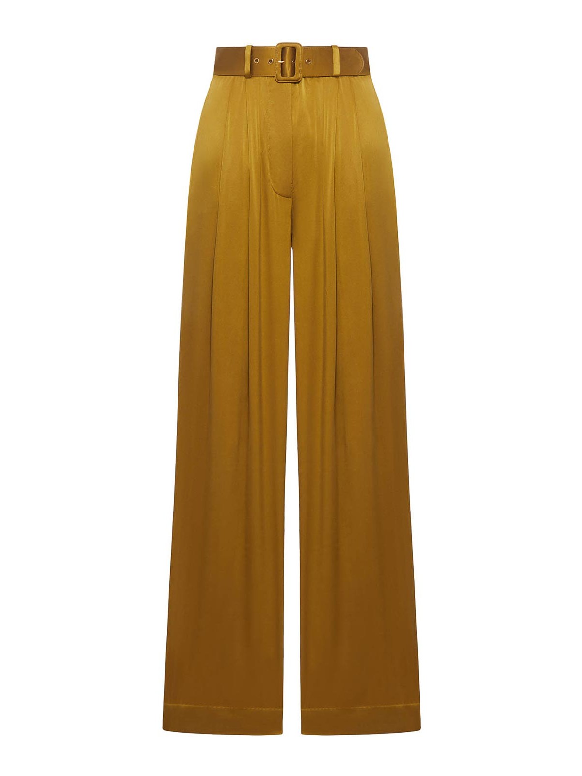 Hosenschlitz mit Riegel und Haken, Seitentaschen, Saumtaschen, Gürtel mit farbiger, an, farbiger Schnalle, leichte Charmeuse, Falten, - Farbe oliv