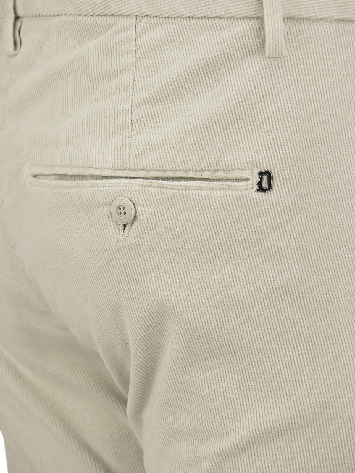 Chinohose aus Cord mit verdecktem Reißverschluss und Hakenverschluss.