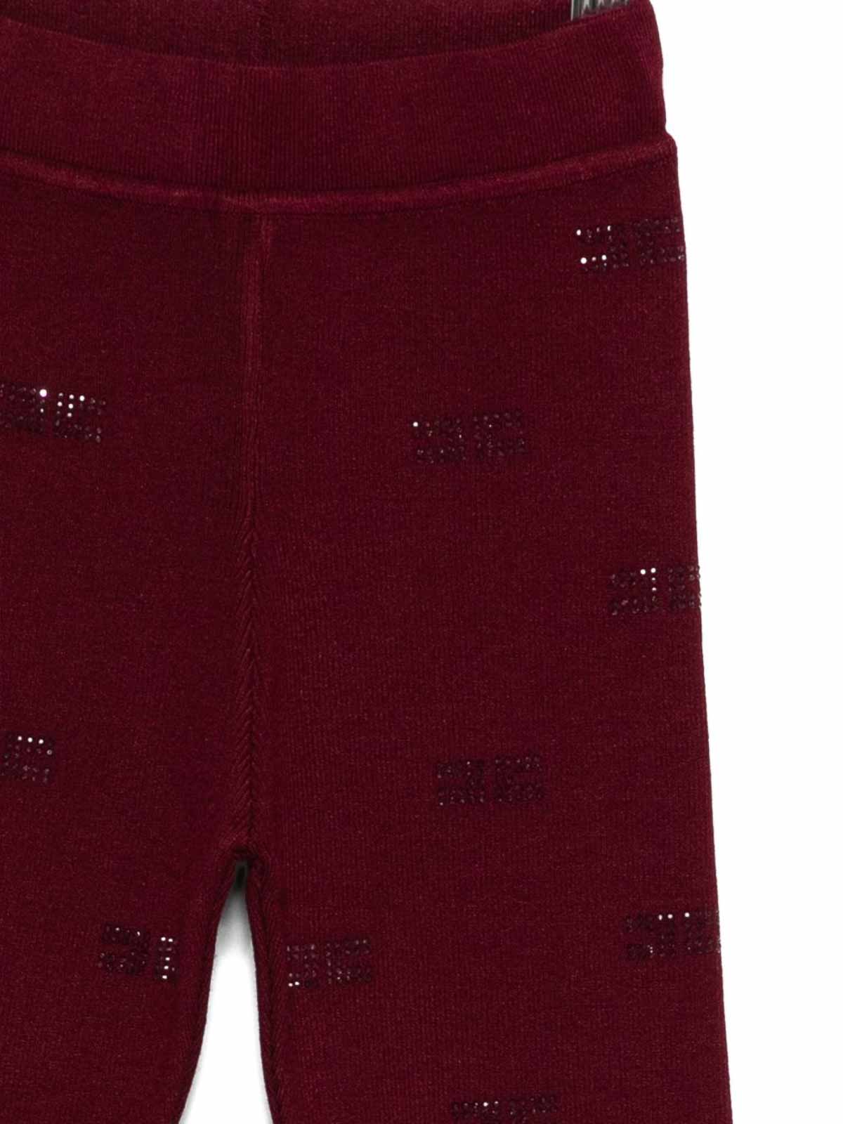 Hose mit Logo-Merkmalen, burgunderrote, gerippte Textur, Logo-Motivverzierung, elastischer Bund, gerader Schnitt