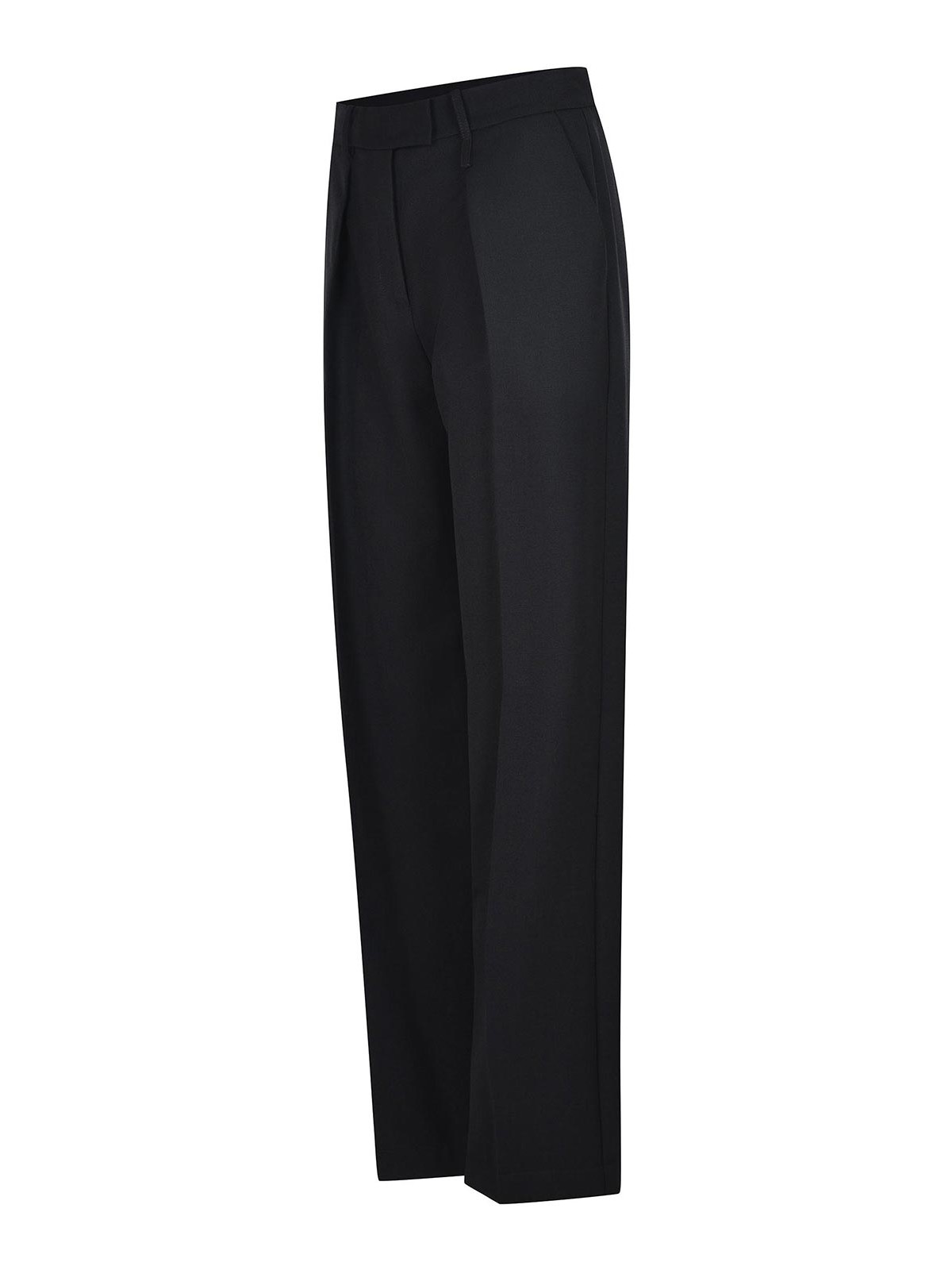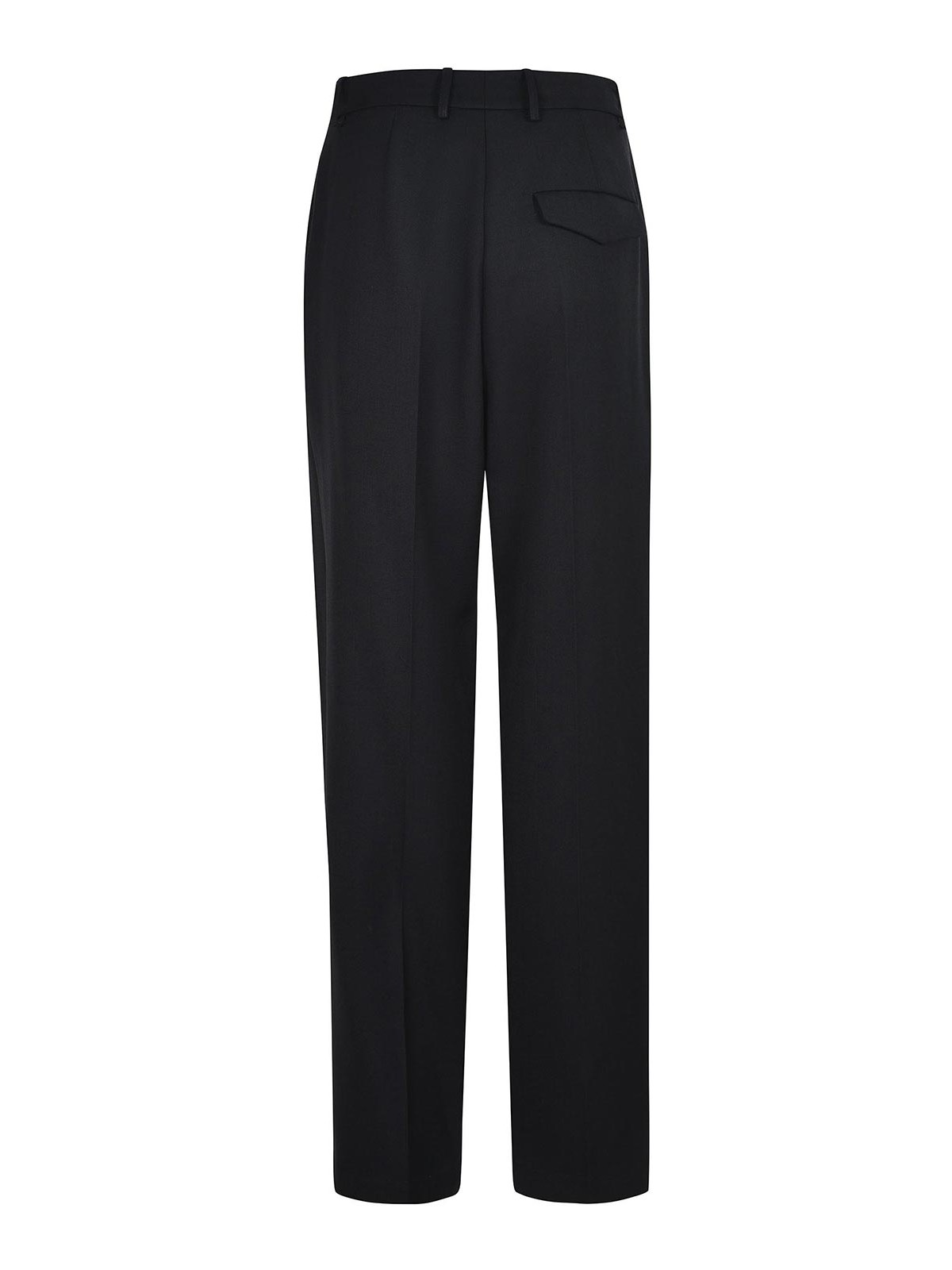Hose Alysi aus Wollmischung in Schwarz. Verschluss mit Reißverschluss, Haken und Knopf. Gürtelschlaufen. Falten auf der Vorderseite. Seitentaschen. Gesäßtasche mit Klappe. 55% Polyester 45% Schurwolle. hergestellt in Italien.