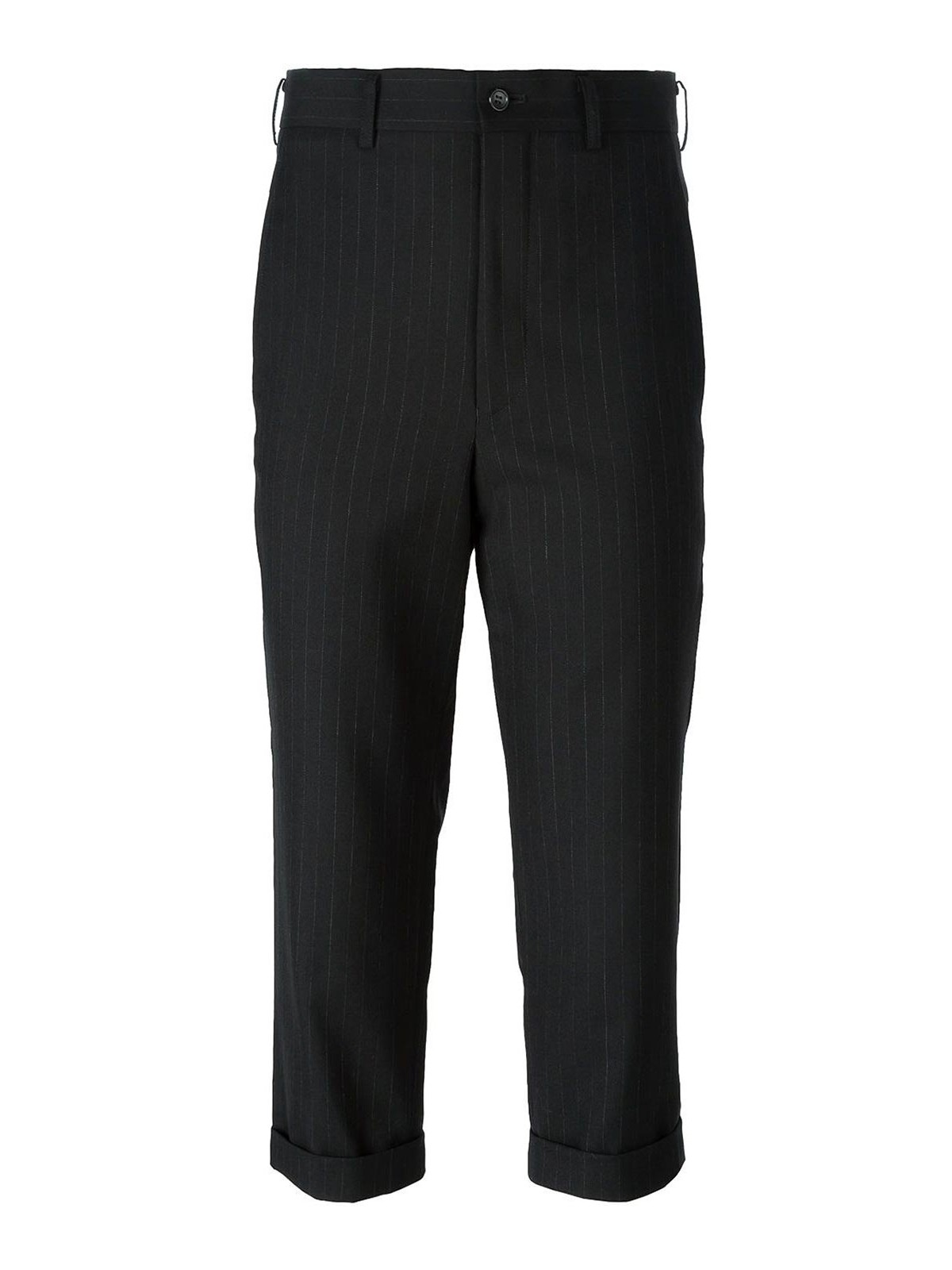 Schwarze, kurz geschnittene Nadelstreifenhose von comme des garons comme des garons