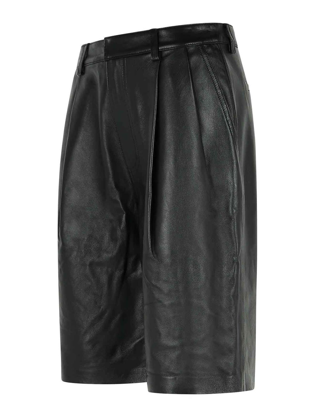 Komplett aus Leder gefertigt, lange Silhouette, die durch die Falte auf der Vorderseite betont wird, Polyesterfutter, seitliche Leistentaschen, Reißverschluss- und Hakenverschluss, zwei Leistentaschen auf der Rückseite