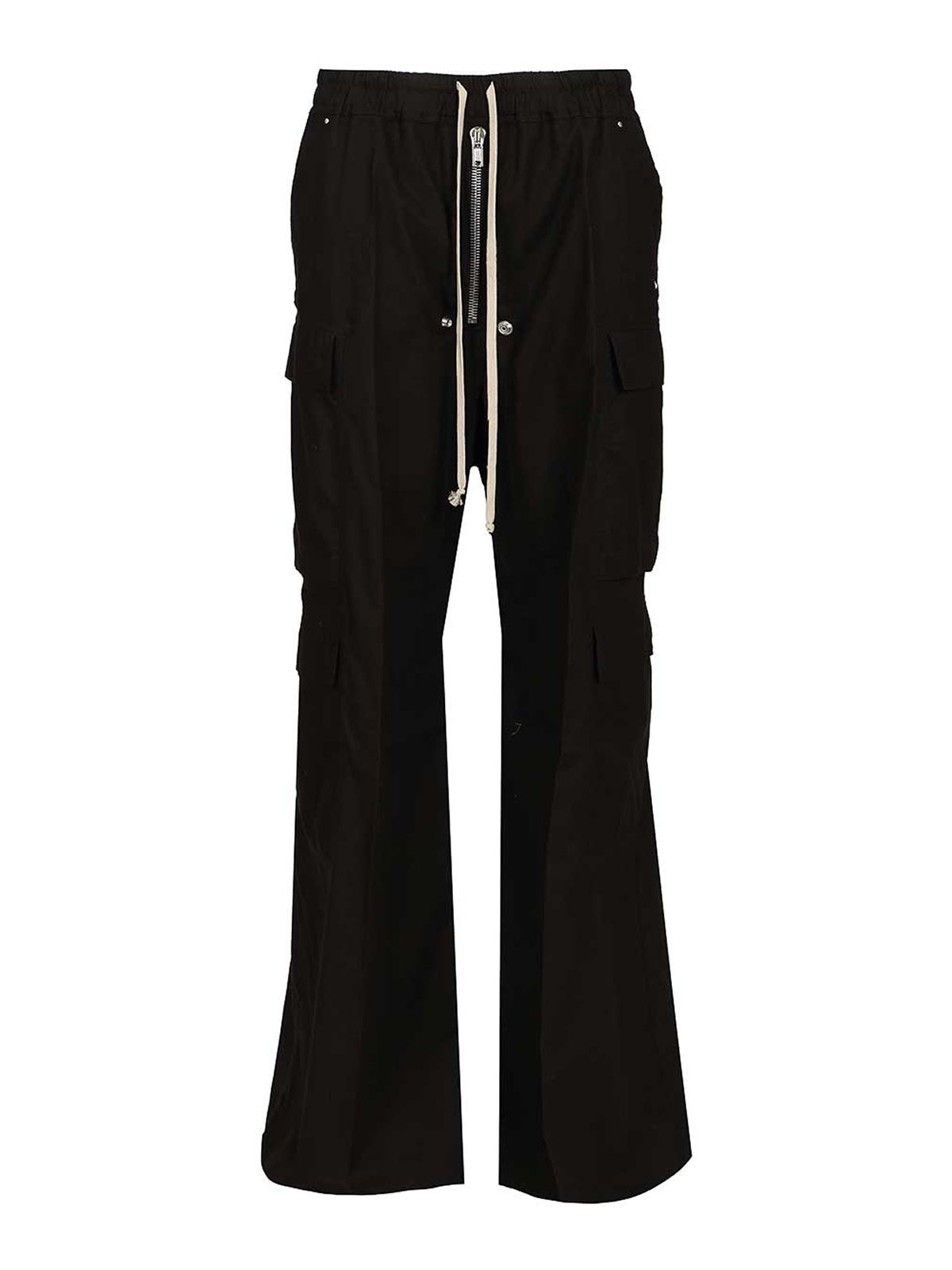 Cargohose aus Baumwolle mit Gummizug und Kordelzug in der Taille, mehrfacher Reißverschluss, Taschen, weites Bein und übergroßer Saum