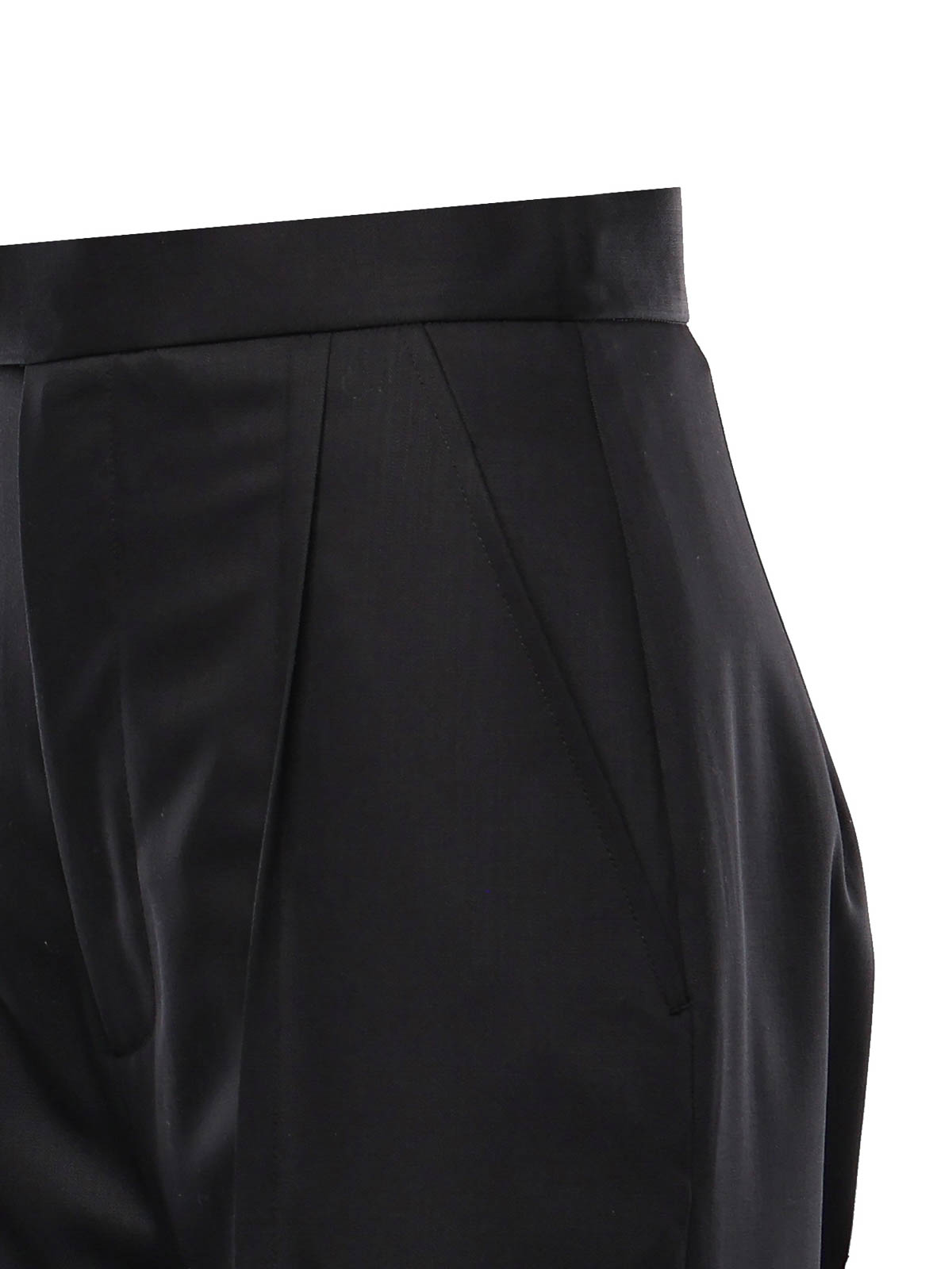 aus Schurwolle, Reißverschluss, Haken- und Knopfverschluss, Frontfalten, reguläre Passform, abgebildete Größe ist 40, hergestellt in Italien, Farbe: schwarz