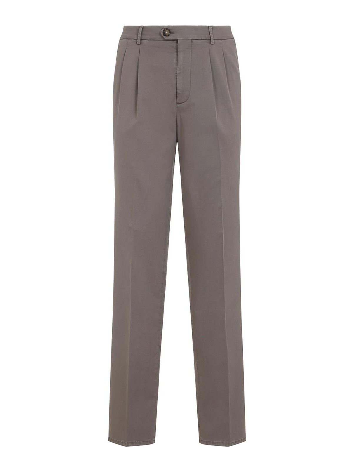 Brunello Cucinelli taubengraue Chinohose, gefertigt und gemischt, mit Reißverschluss, Gürtelschlaufen, Seitentaschen, Gesäßschlaufen, Einschubtaschen, gerader Saum