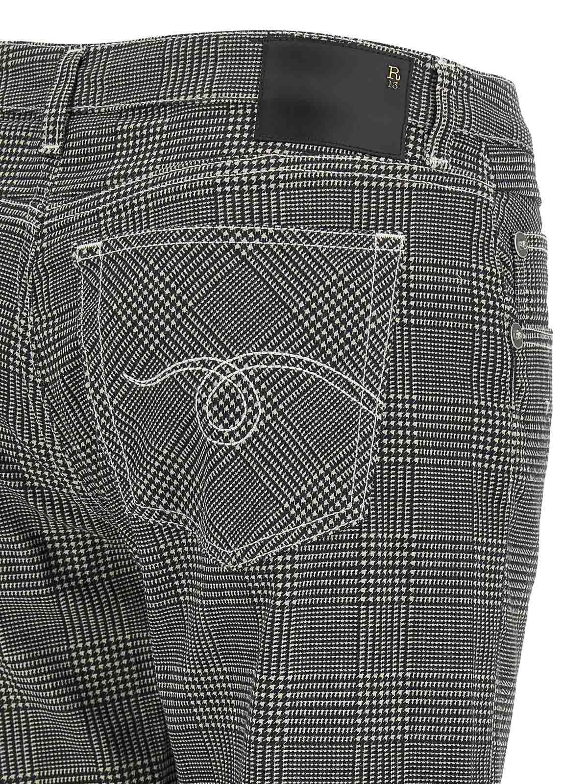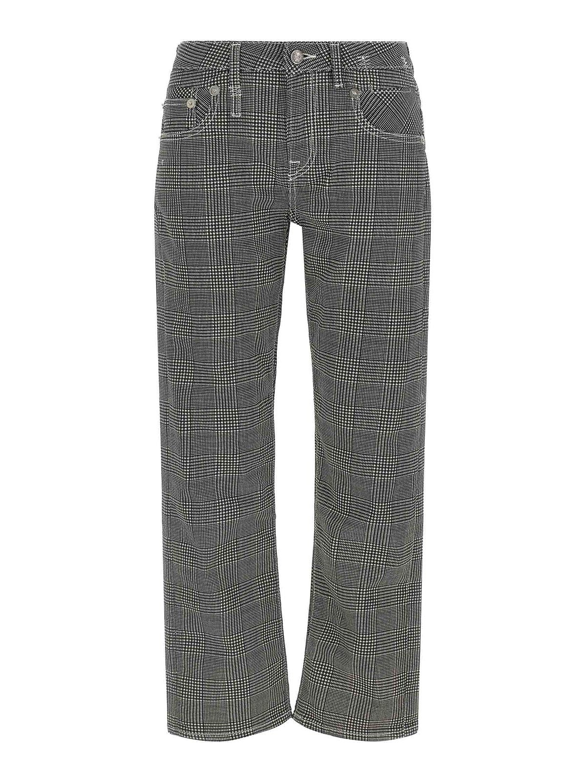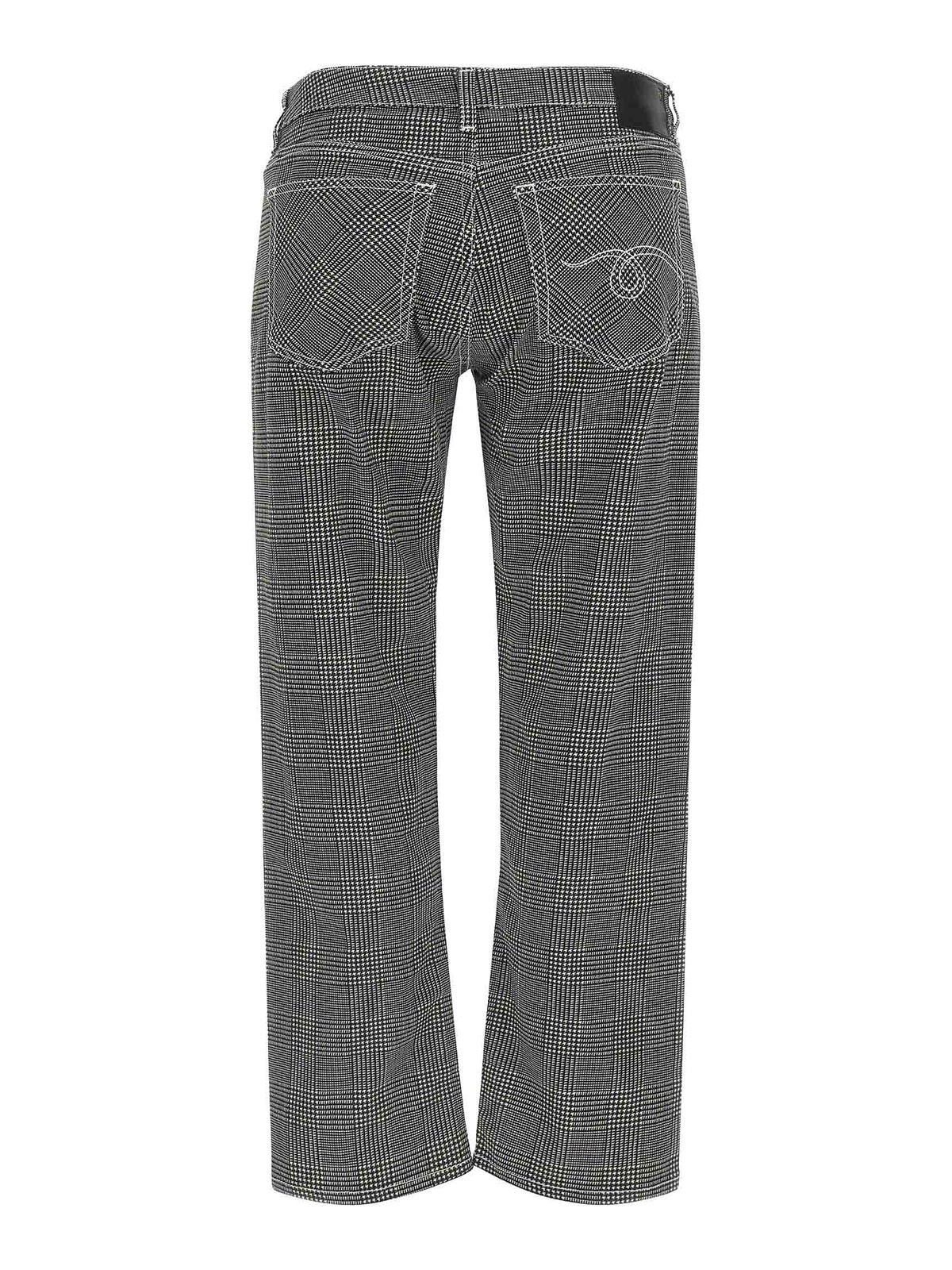 Hose aus elastischer Baumwolle mit Prinz-of-Wales-Muster für Jungen, gerader Crop-Stil, niedrige Taille, gerades Bein, Frontreiß- und Knopfverschluss, fünf Taschen, Logo-Etikett auf der Rückseite.